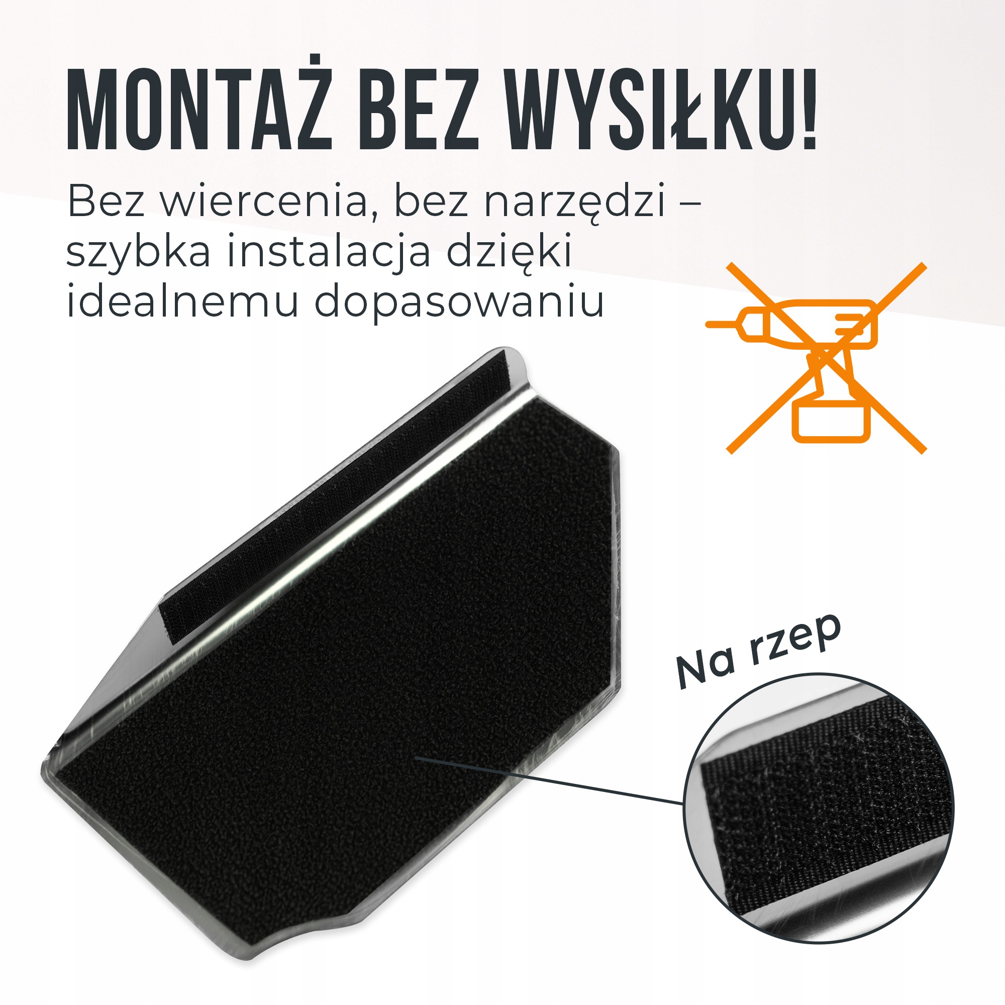 - Простой и неинвазивный монтаж, не требующий применения дополнительных инструментов – без сверления и шурупов.