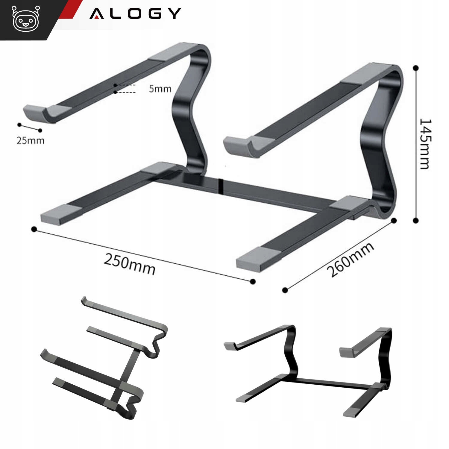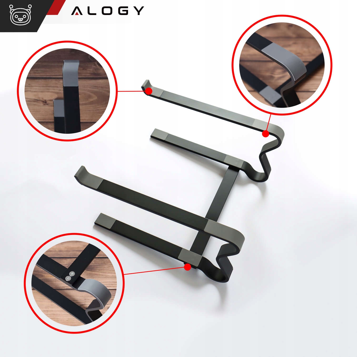 Основные особенности подставки выполнены из алюминия, простая сборка, нескользящие ножки и стабилизаторы положения ноутбука, долговечность и устойчивость, а также обеспечение стабильной поддержки устройств.