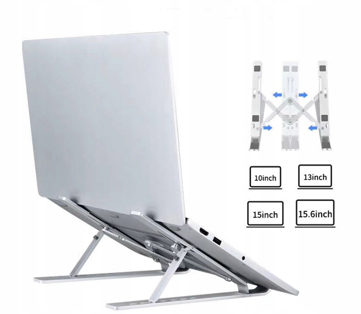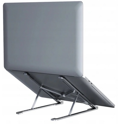 Подставка складная, поэтому в сложенном виде имеет очень маленькие габариты. Он поместится в любой ящик или сумку для ноутбука.