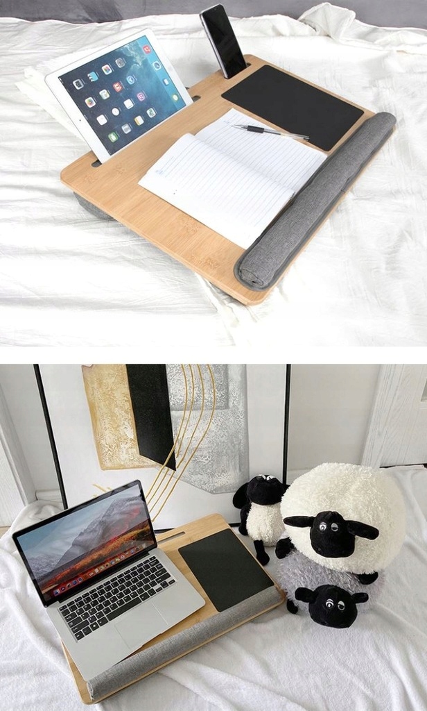 Наш стол настолько легок и удобен в переноске, что его легко можно взять с собой и использовать на работе, дома и даже на природе, он весит всего 1,33 кг. Натуральная доска и мягкий материал делают использование коврика просто приятным. Коврик можно использовать как в повседневной работе за столом, так и при работе с дивана или кровати. Он также отлично подходит для размещения мыши и клавиатуры, с помощью которых вы можете управлять телевизором прямо из спальни. Клавиатура, мышь и компьютер в предложение не входят.