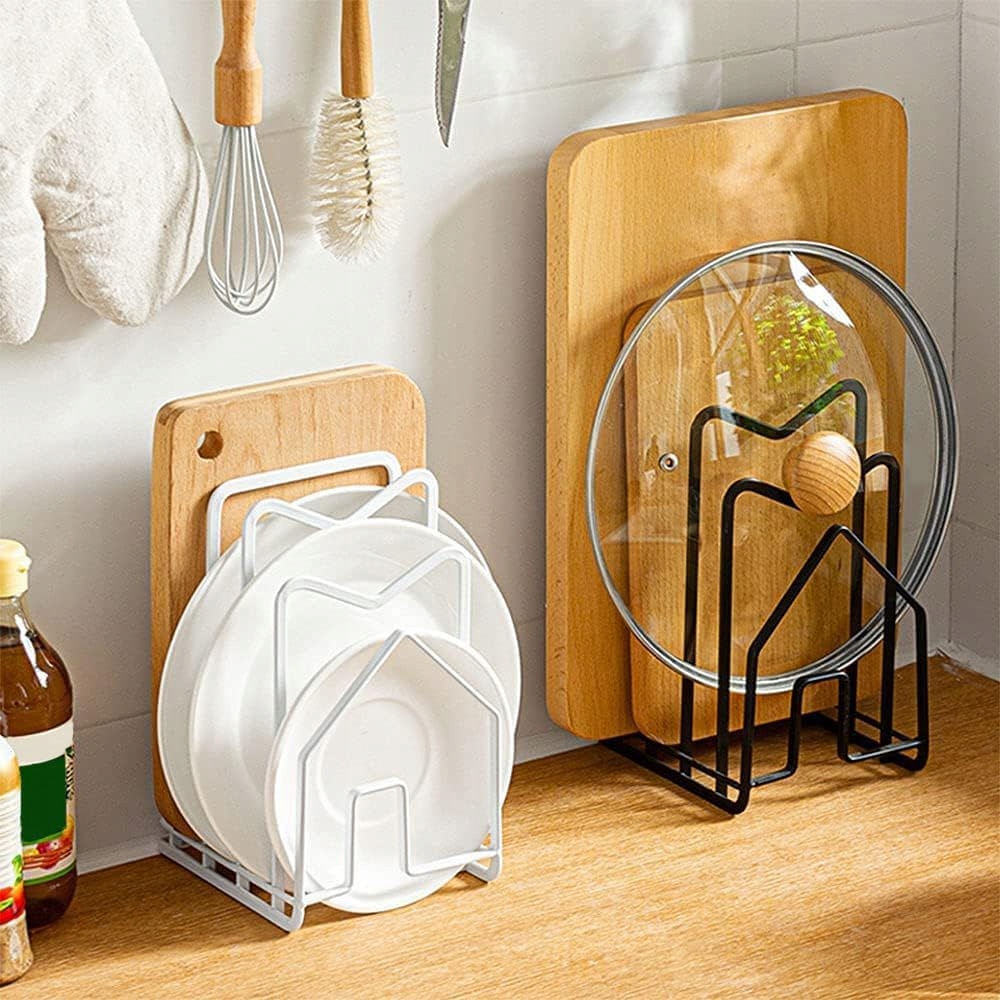 Универсальное использование: эта подставка для разделочных досок идеально подходит для небольших комнат и небольших домов, таких как квартиры, фургоны, кемперы и домики. Вы можете использовать его на кухонной стойке, в шкафах, под раковиной, в кладовке и даже в офисе в качестве подставки для книг.