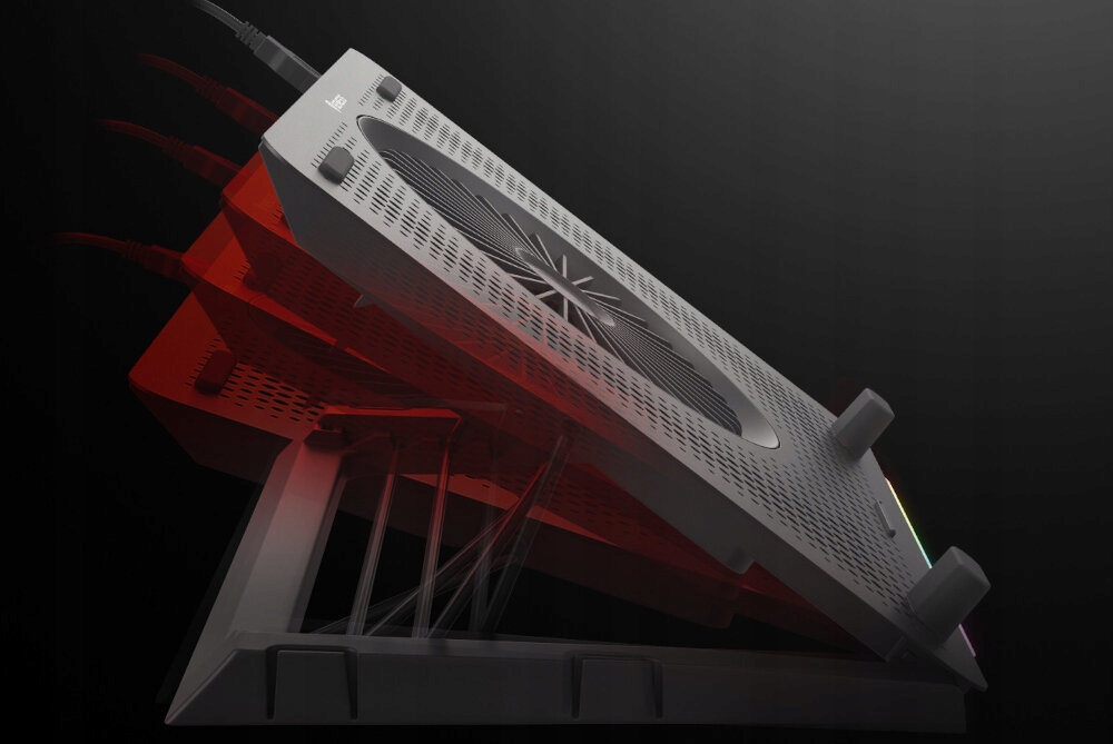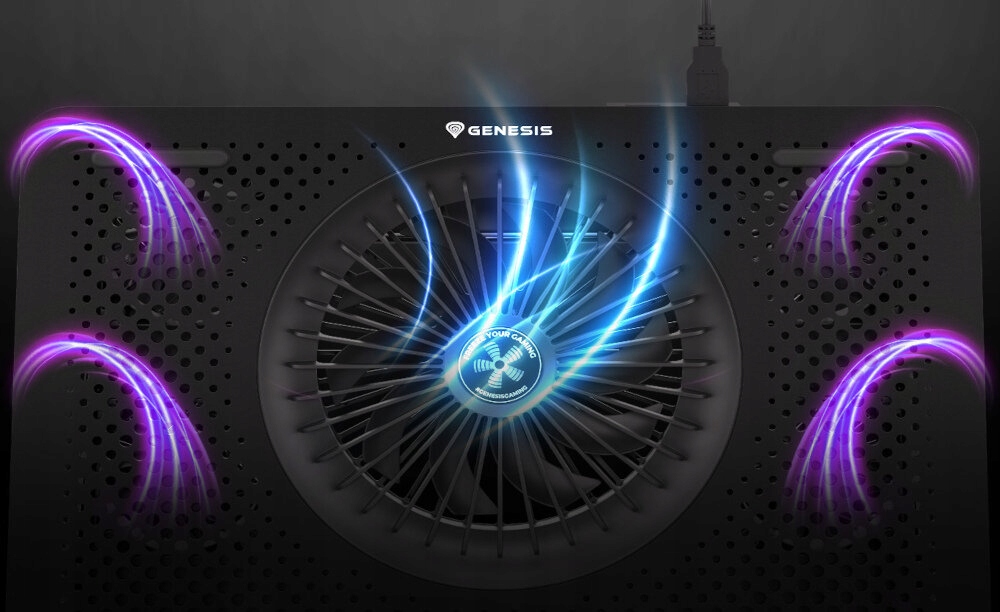 Genesis Oxid 450 RGB - это подставка, на которой используется 5 вентиляторов для охлаждения ноутбука. 4 из них - маленькие вентиляторы, которые тянут горячий воздух из -под вашего устройства. Один главный вентилятор отвечает за нажатие прохладного потока. Более того, вы можете легко регулировать их скорость благодаря 2 режимам. Посмотрите, насколько это просто.