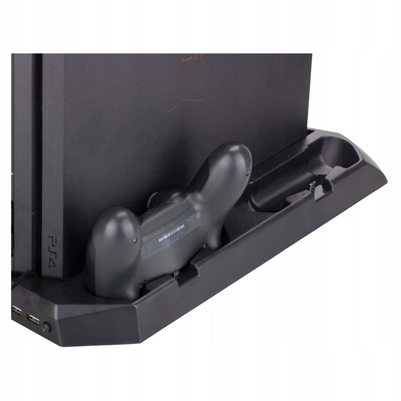 Подставка позволяет разместить консоли PlayStation 4 PRO и PlayStation VR на боковой стене. Это экономит место. Подставка изготовлена из прочного пластика, поэтому ее можно использовать годами. Подставка оснащена двумя вентиляторами для охлаждения консоли. Под подставкой есть резинки для стабилизации консоли. Станция включает в себя 2 станции для планшетов и 2 станции для контроллеров MOVE для их зарядки. Кроме того, он оснащен 4 портами USB. Переключатель включения и выключения вентилятора на стойке. Товар совершенно новый.