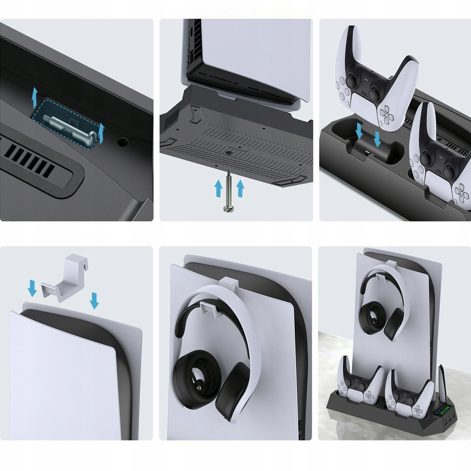 💎💎💎Идеально подходит для организации: Станция охлаждения PS5 включает в себя крючок для наушников, гнездо для мультимедийного пульта дистанционного управления и металлический винт. Используйте металлические винты, чтобы надежно закрепить консоль PS5 на охлаждающей подставке консоли PS5 Slim/PS5 Pro/PS5, сохраняя ее устойчивость и безопасность. Эта зарядная станция для PS5 с охлаждающим вентилятором позволяет хранить аксессуары для контроллера PS5, наушники PS5 и медиа-пульт в одном месте.