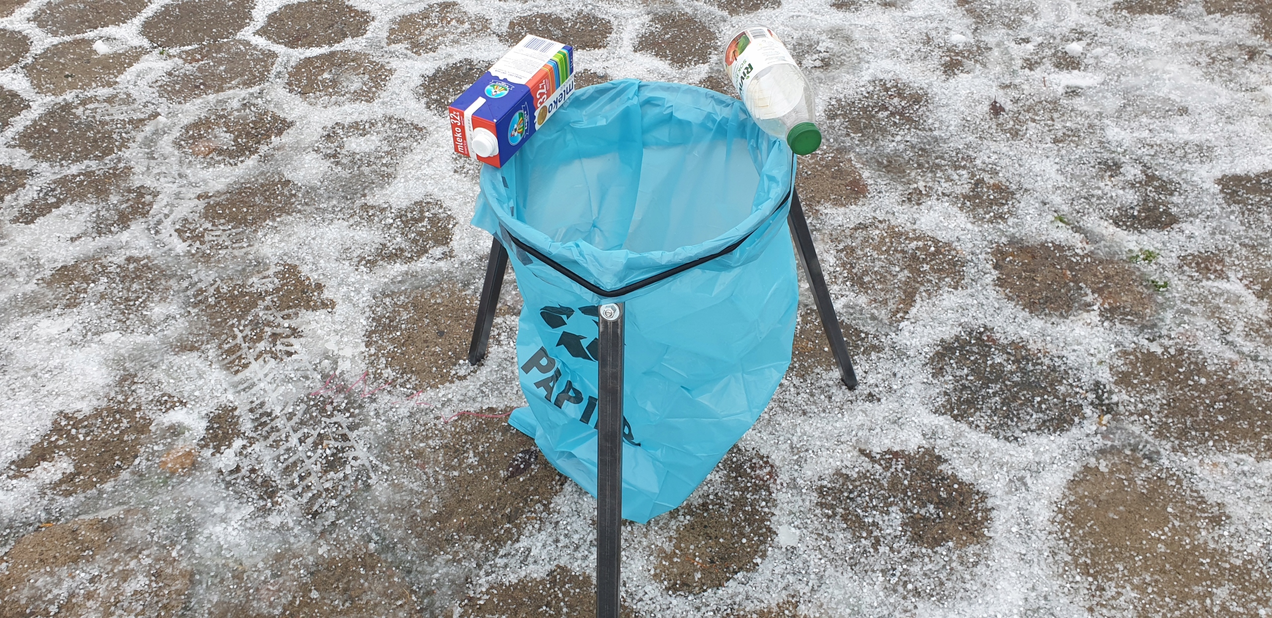 Прочный держатель для пакета. Высота подставки примерно 65 см.