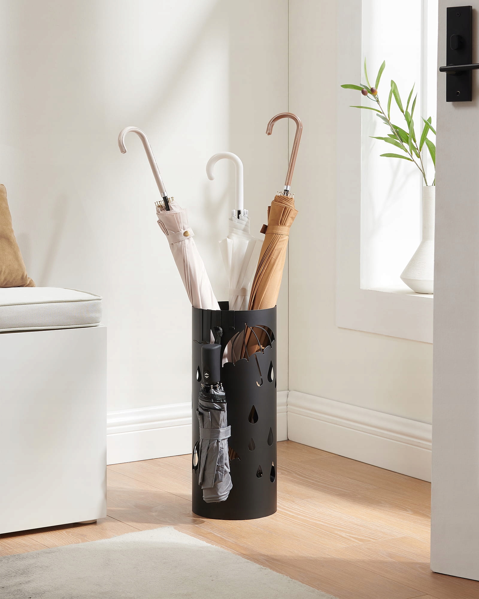 В комплект входят 4 крючка, на которые можно повесить сухие зонтики, а также зонтики меньшего размера.