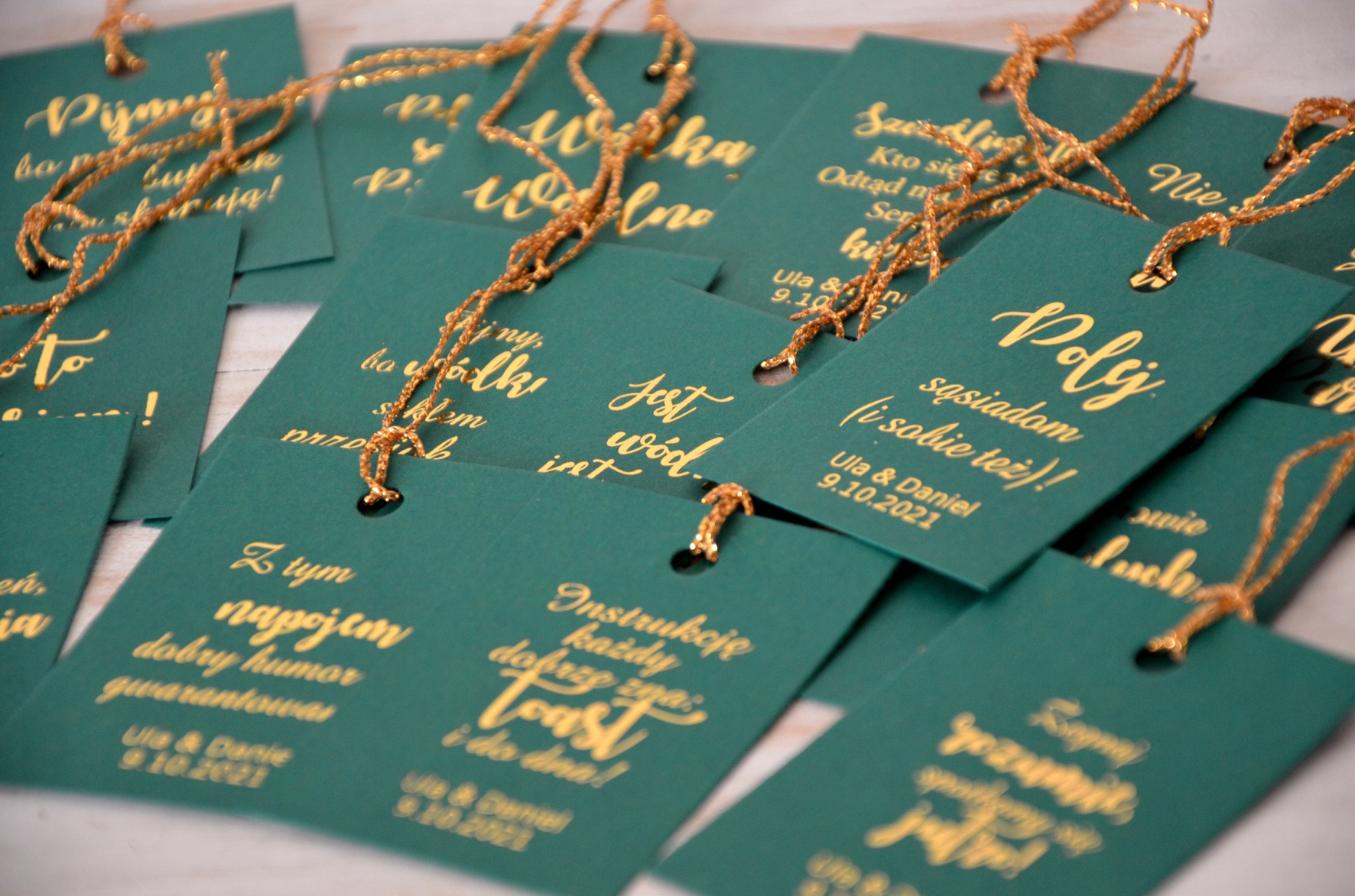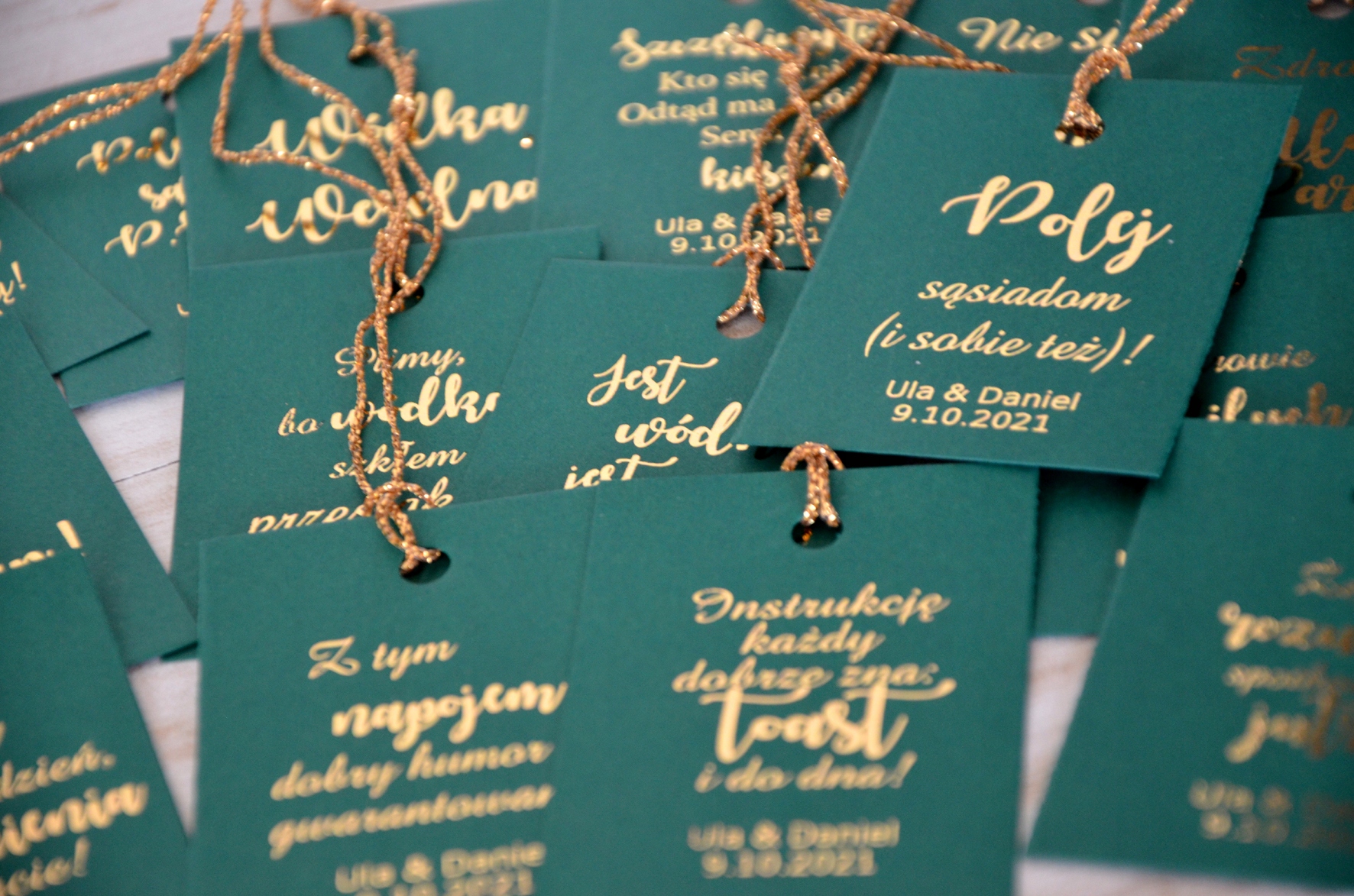 Предлагаем бирки для алкоголя ручной работы из высококачественной зеленой бумаги с позолоченными надписями. Подвески, украшенные золотой нитью.