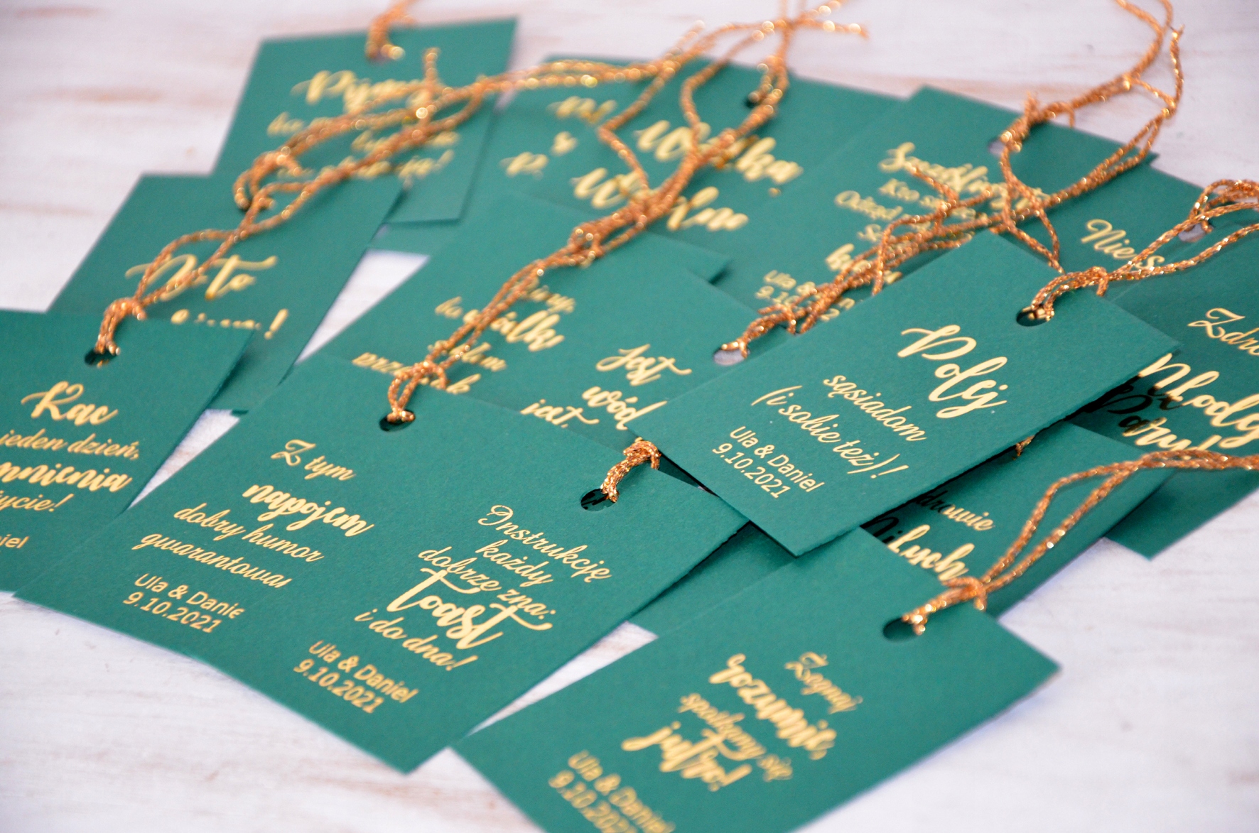 В стоимость включен 1 комплект, то есть 50 штук персонализированных алкогольных подвесок с различным текстом, микс из 16 текстовых узоров + золотые нити
