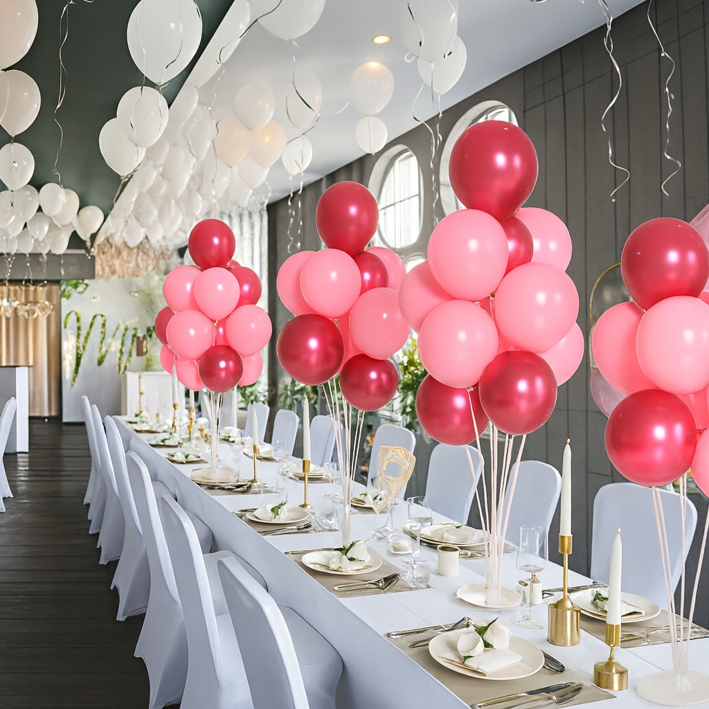 Украшение стола, восхищающее элегантностью и легкостью! Подставки для воздушных шаров позволяют создать целостную, эффектную композицию, идеальную для свадеб, вечеринок и гала-ужинов.