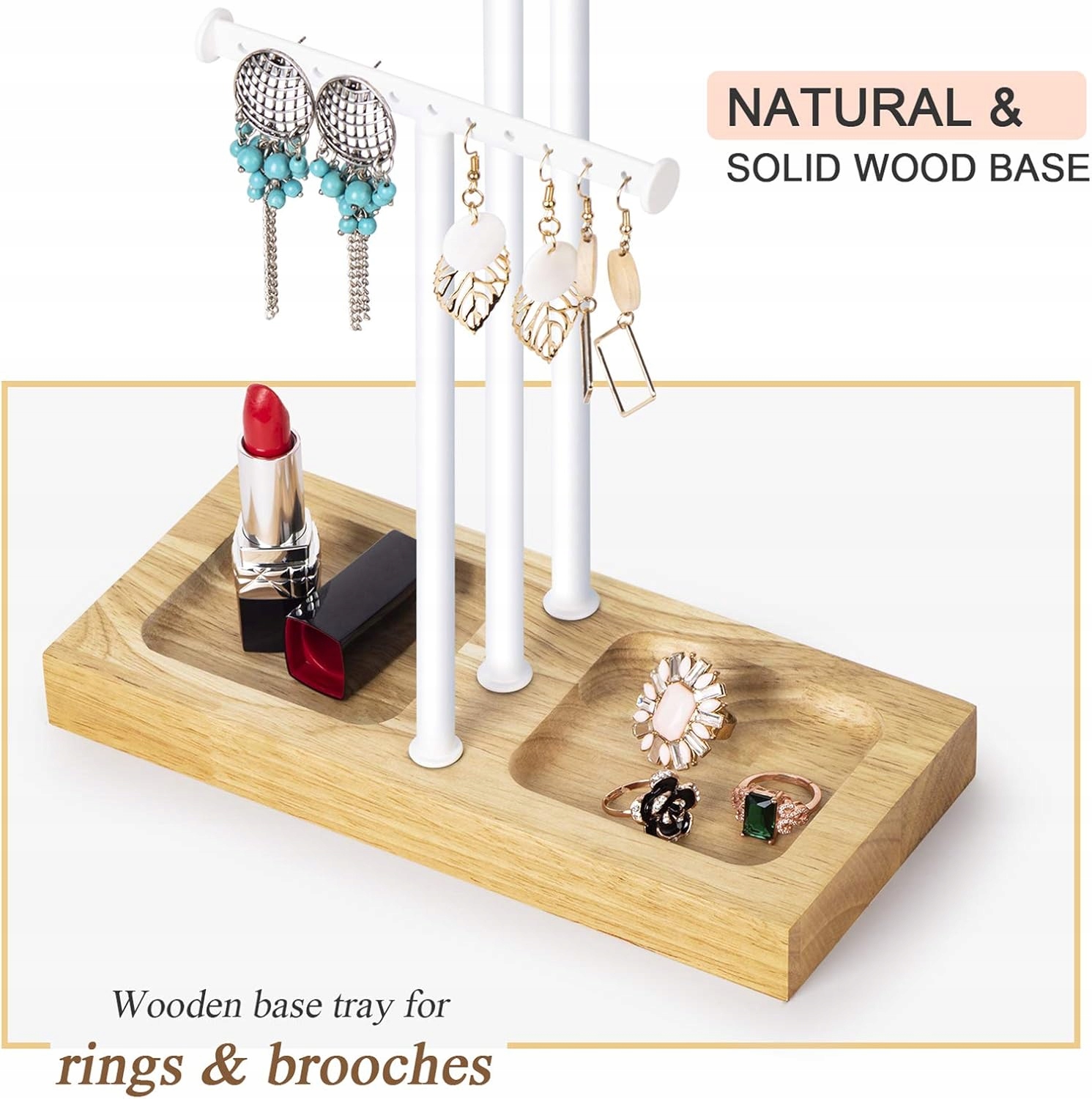 Эта ювелирная подставка оснащена 3 "T" стержнями для хранения и представления цепей, браслетов, колец, часов с ремнем и т. Д. Среднее с отверстиями для подвешенных серьгов