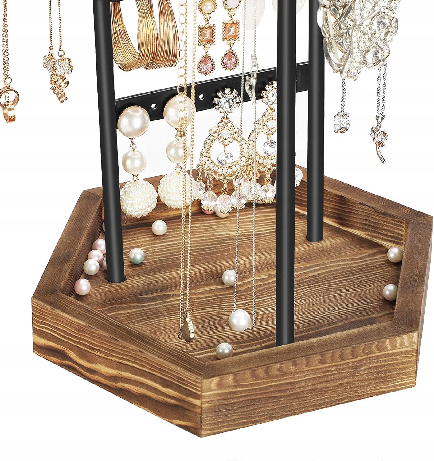 • Положите в косметичку: Благодаря 16 отверстиям, 3 Т-образным палочкам разной высоты и деревянной основе вы сможете организовать свои серьги, кольца, браслеты, ожерелья.