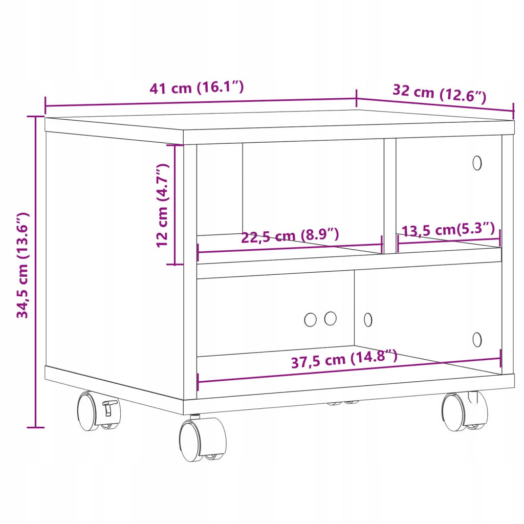Подставка для принтера на колесиках, дуб Сонома серый, 41x32x34,5 см