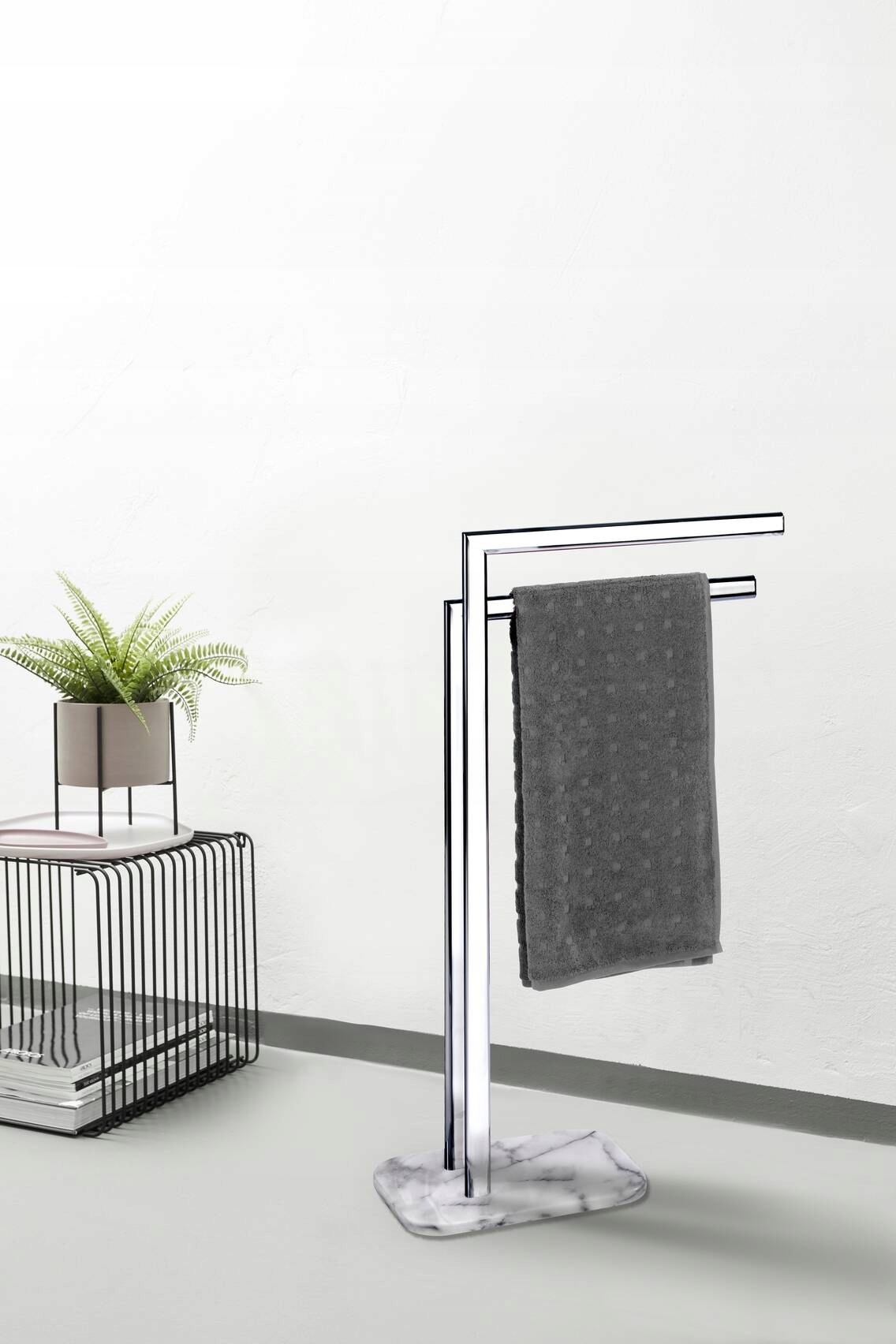 2-rack Stand для полотенец из серии Onyx поможет сохранить заказ в ванной и ускорить сушку полотенец. Минималистский и элегантный дизайн идеально подходит для ванных комнат в современном стиле и не только. стабильная база из элегантного, настоящего мрамора. Он содержит параллельные расположенные, прямоугольные рычаги хромированной нержавеющей стали