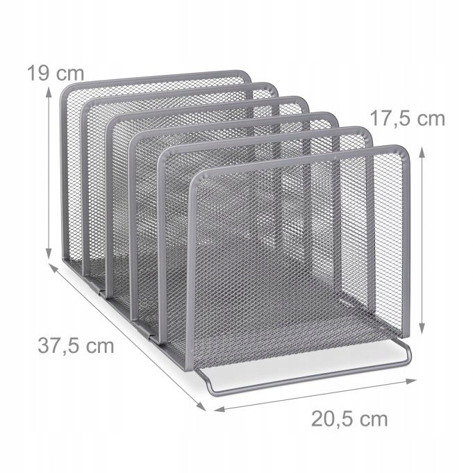 С помощью этой современной подставки для документов вы сможете навести порядок на своем столе в офисе или домашнем кабинете. Эта металлическая полка с мелкой сеткой имеет 5 отделений разной высоты. Хорошая организация дома или офиса гарантирует, что вы всегда найдете нужный документ. Полка для писем в современном сетчатом дизайне также отлично смотрится в качестве журнальной стойки в гостиной или для хранения кулинарных рецептов на кухне.