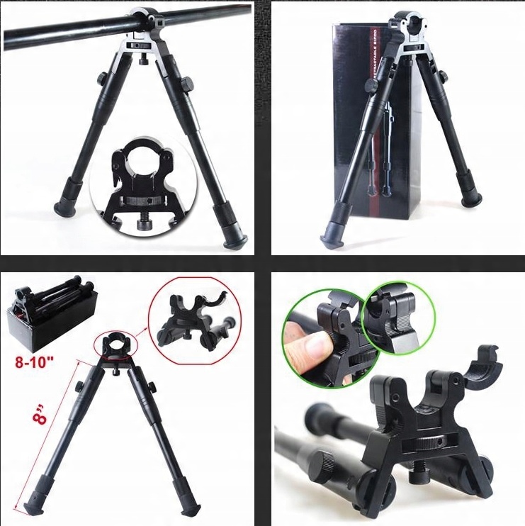 Изготовлен из алюминиевых сплавов. Оснащен резиновыми подножками, регулируется по стволу (отверстие регулируется от 11 до 19 мм), пружинными ножками. Сошки имеют обойму, позволяющую осуществлять быструю сборку и разборку на стволе. Его сборка также займет не более нескольких секунд.