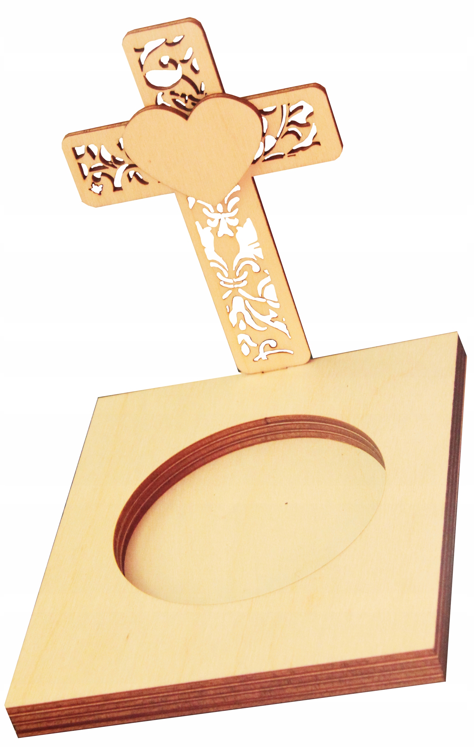 Подсвечник с ажурным крестом из деревянной фанеры. Вырезан лазером из материала толщиной 3 мм. Это уникальное украшение, которое также защищает надгробие от загрязнений и повреждений.