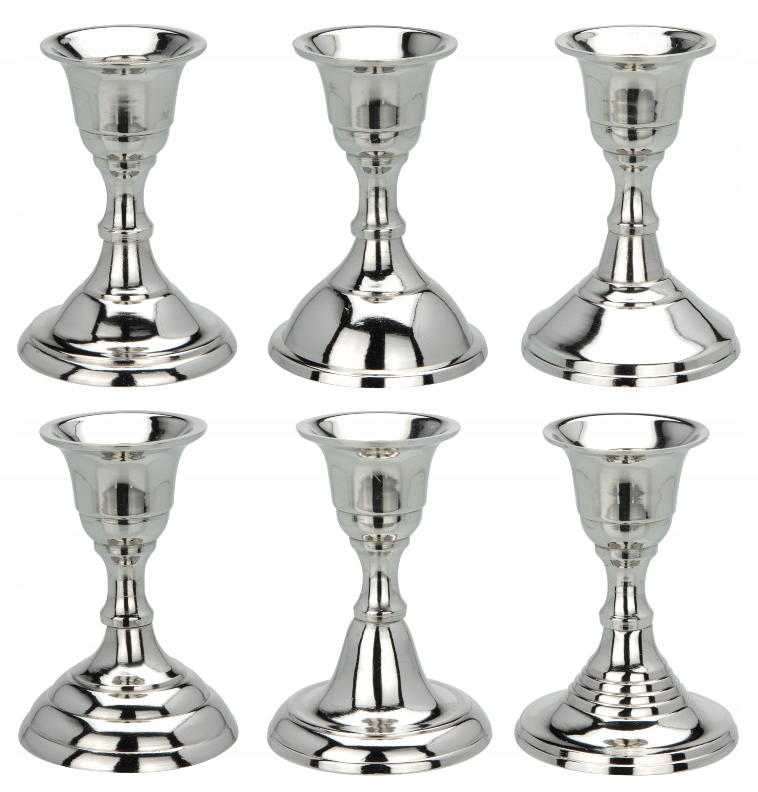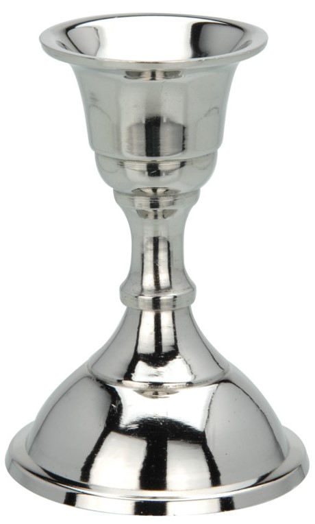 Классический никелированный подсвечник серебристого цвета в форме чашки.