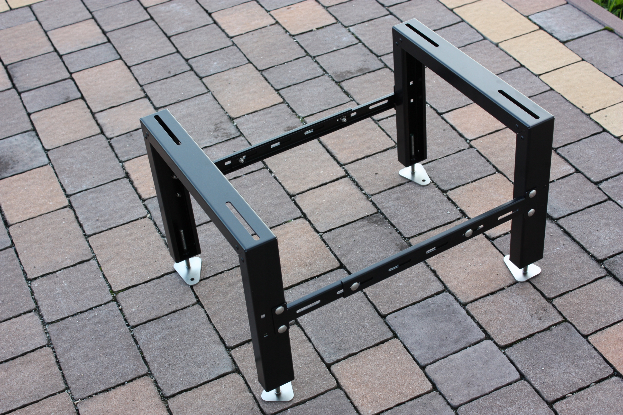 Кронштейн с тепловым насосом, кондиционер, изготовленный из оцинкованных и порошковых листов толщиной 2 мм, такое покрытие обеспечивает коррозионную стойкость в течение многих лет. Набор включает в себя все необходимые элементы для оцинкованной стали. Расстояние между осями отверстий l max = 768 л min = 430. Регулировка на верхней части max = 385 мин = 188. Набор включает в себя vibroi -fi40 H 30 с резьбой M8. Черный коврик.