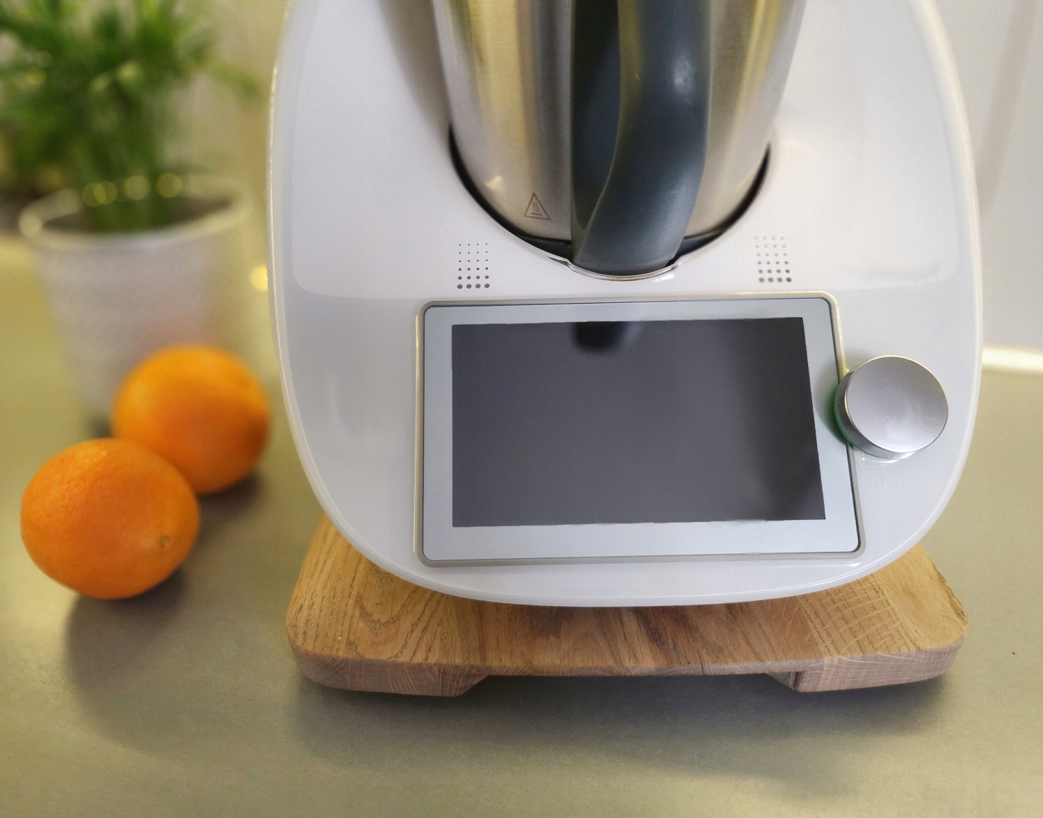 Подставка имеет 3 углубления, идеально подходящие для ножек Thermomix. Благодаря им Термомикс устойчиво стоит и не перемещается по доске. Выемки также обеспечивают правильную работу встроенных весов.