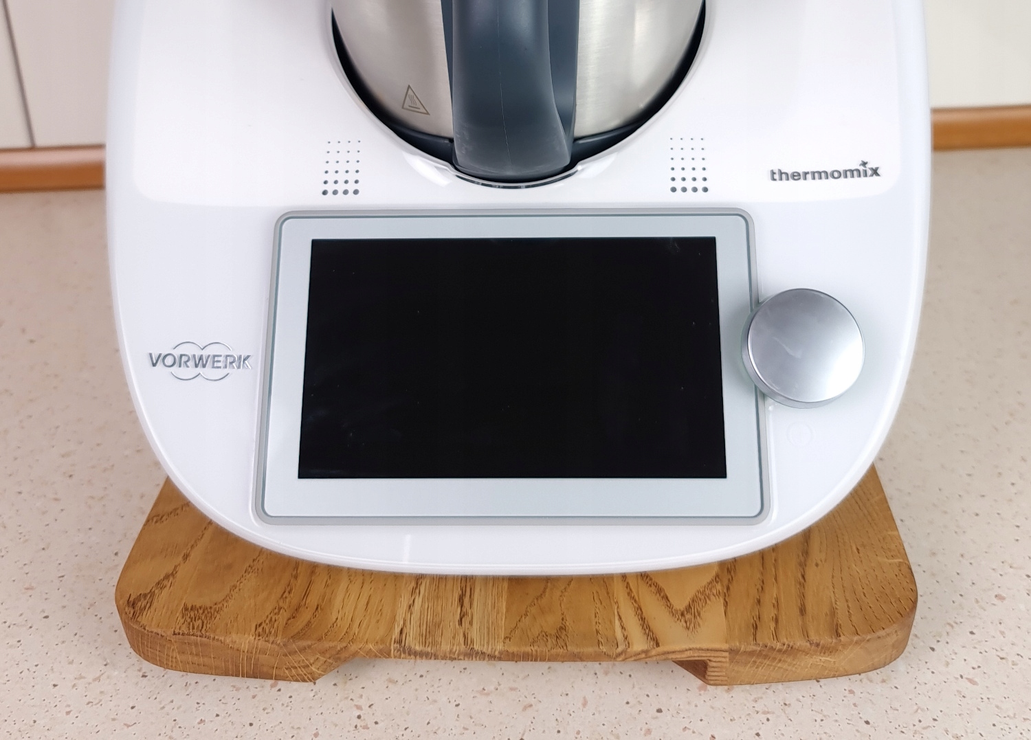 Подставка имеет 3 углубления, идеально подходящие для ножек Thermomix. Благодаря им Термомикс устойчиво стоит и не скользит по доске. Выемки также обеспечивают правильную работу встроенных весов.