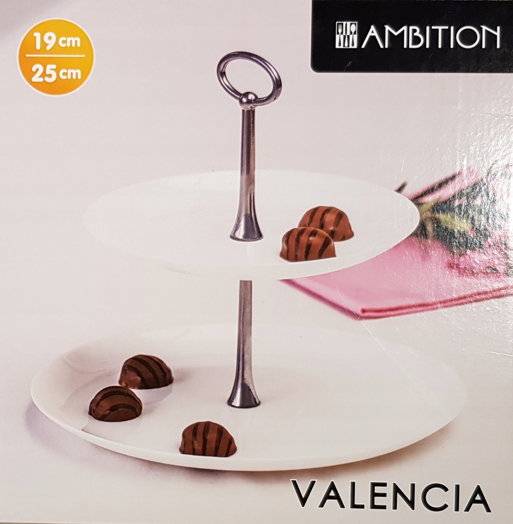 Элегантная круглая двухъярусная подставка для тортов Valencia от Ambition для тортов, фруктов, сэндвичей, закусок или тортов. Сосуд изготовлен из нержавеющей стали и стекла высочайшего качества, которые чрезвычайно гигиеничны и легко чистятся. Круглая пирамида идеально подходит для семейных встреч, послеобеденного чаепития или других торжеств. Тарелка позволит элегантно и эффектно подать деликатесы, радуя глаз каждого гостя и домочадца.