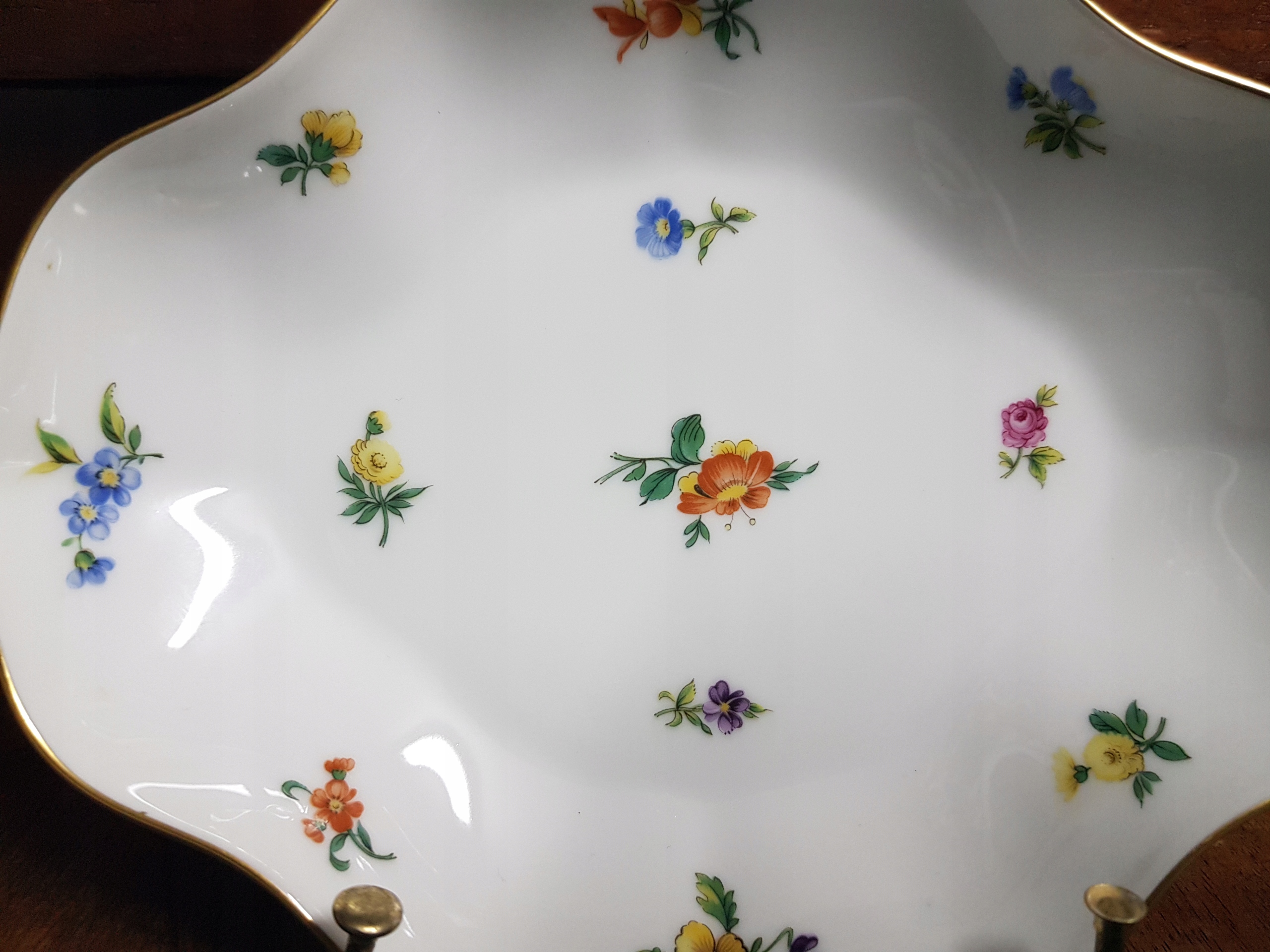 Предмет аукциона небольшая подставка для торта Hutschenreuther.Украшена мелкими цветами.Позолота ок.