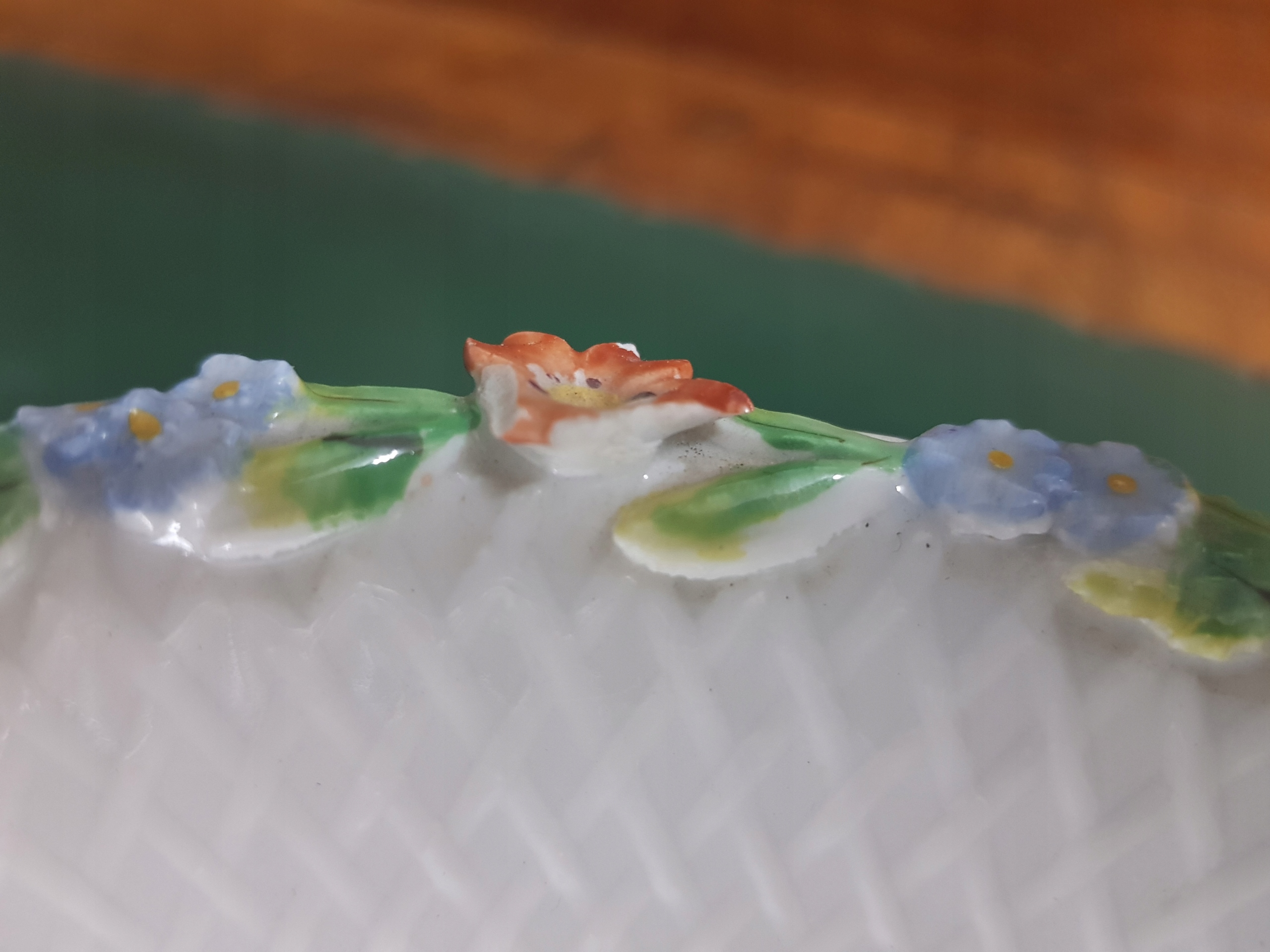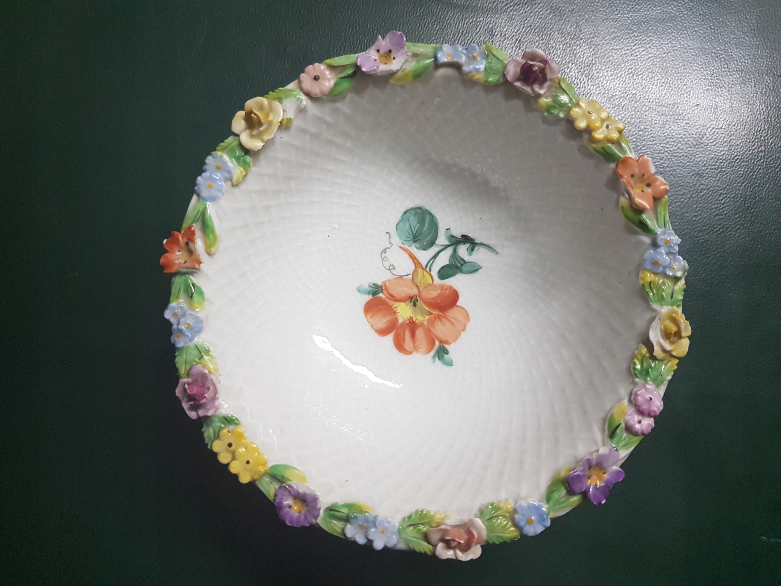 Обод покрыт пластиковыми цветами. К сожалению, большая слегка повреждена. (фото) )