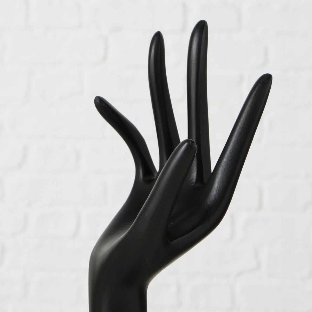 Элегантная подставка для самых ценных украшений. Тонкие пальцы вместят все ваши кольца, а расклешенная нижняя часть красиво украсит часы или браслеты. Полуматовое черное покрытие выглядит чрезвычайно стильно. Будет прекрасным подарком любительнице стиля Glamour.