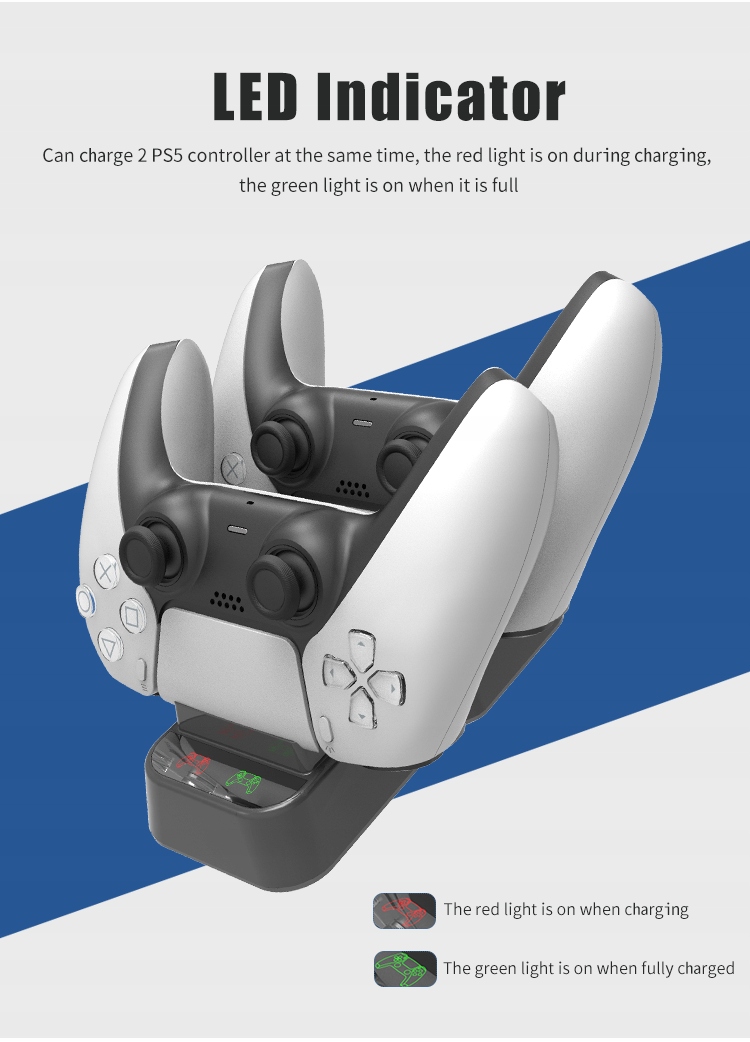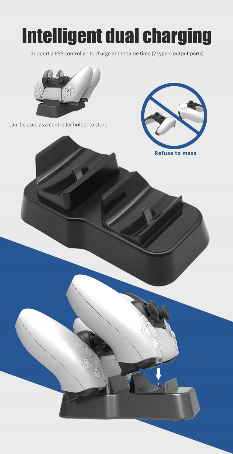 - Поддерживает одновременную зарядку 2 контроллеров PS5, а также может использоваться в качестве держателя контроллера.