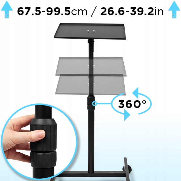 Его также можно использовать как подставку для видео/DVD/Blu-ray или как портативный столик для ноутбука, который можно регулировать как в положении сидя, так и стоя.
