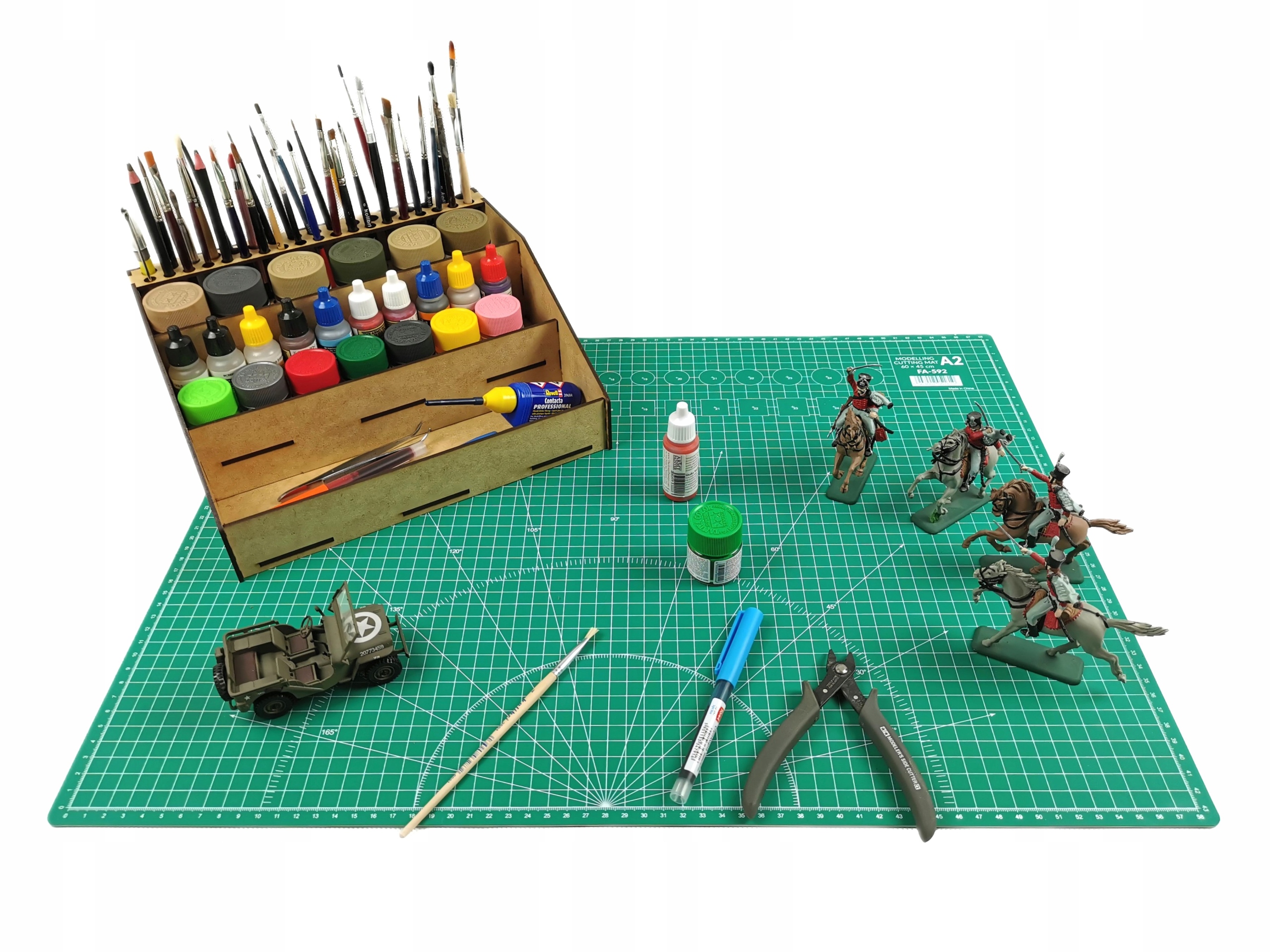 - Практичность: Продуманные места для кистей, красок и химикатов позволяют удобно и упорядоченно хранить все необходимые принадлежности для моделирования.