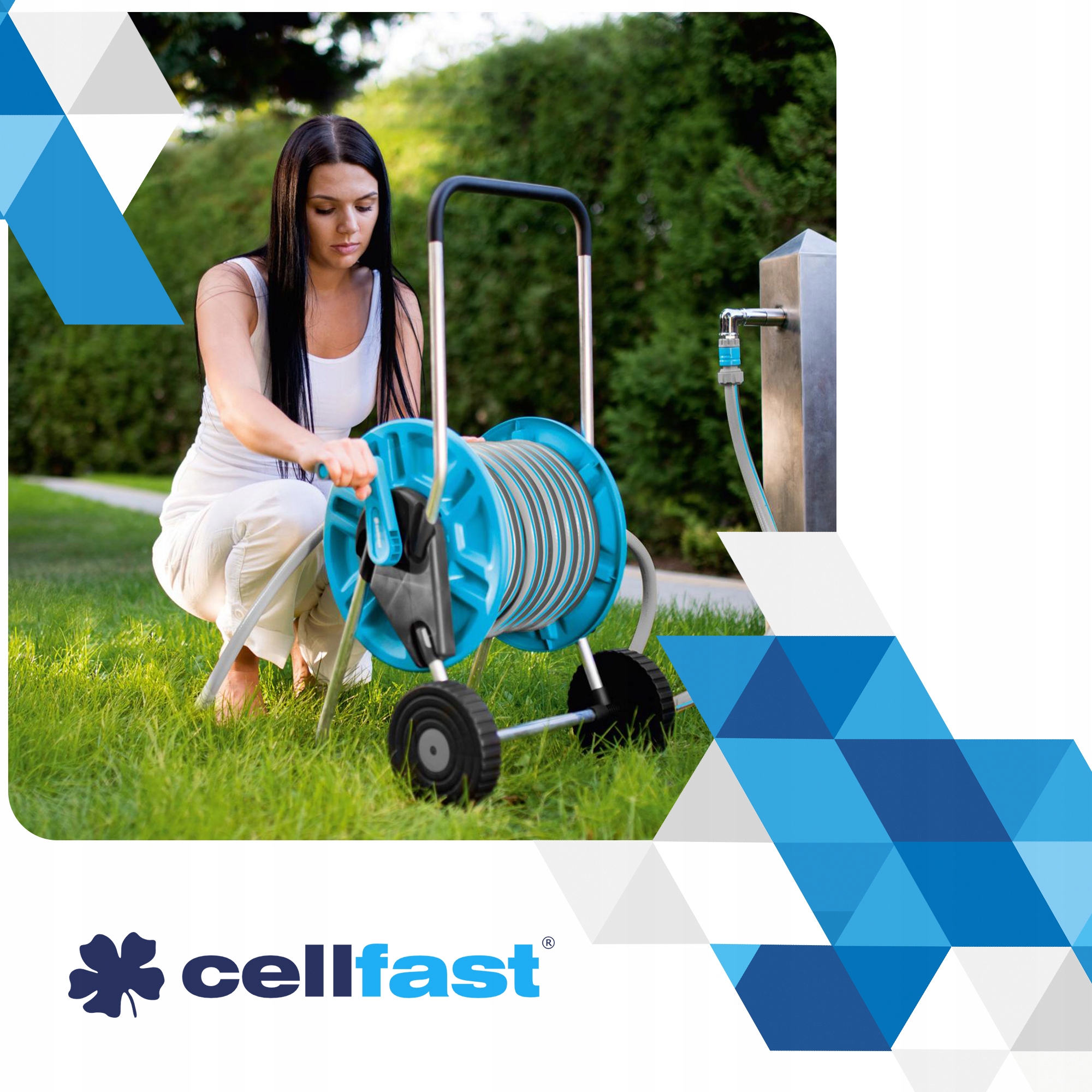 СТОЙКА ДЛЯ САДОВОГО ШЛАНГА 1/2 НА КОЛЕСАХ СОЕДИНИТЕЛЬНЫЙ ШЛАНГ Cellfast, 60 м