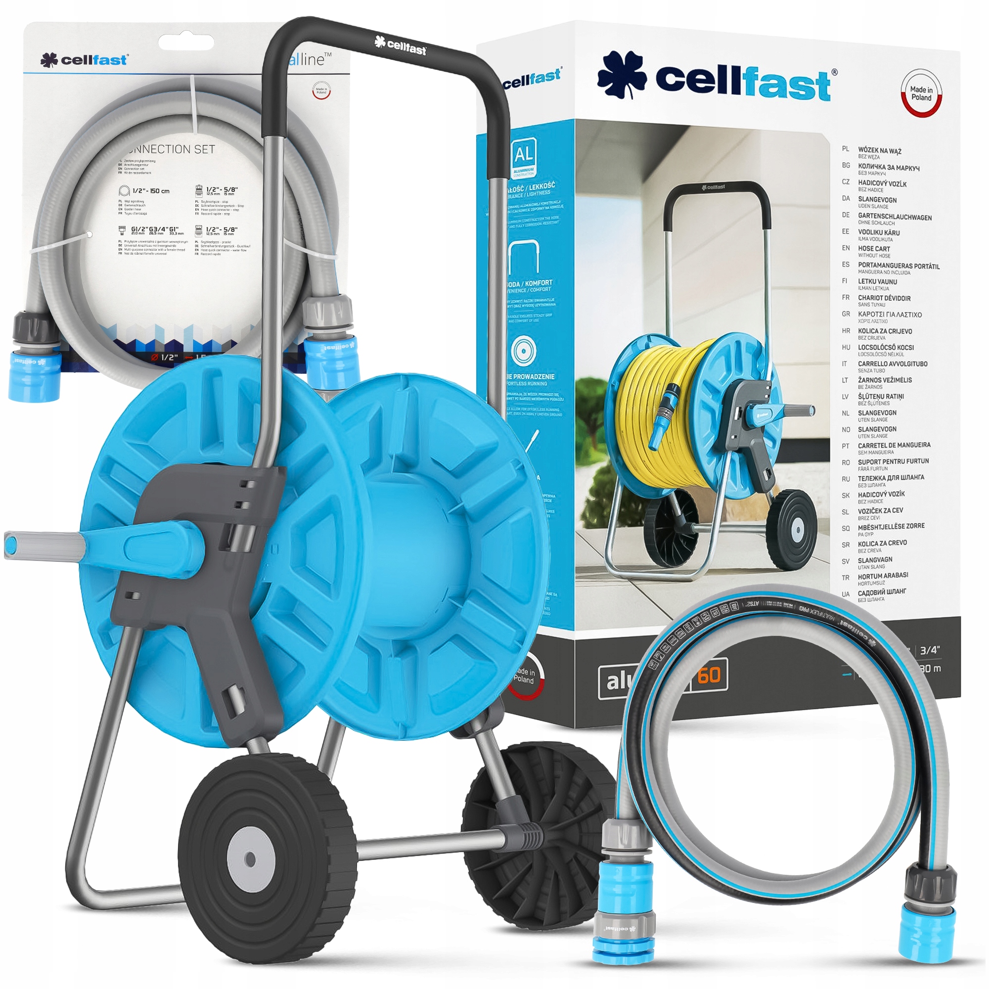 Тележка для шланга ALUPLUS 1/2" 60 м с комплектом соединений Cellfast 1,5 м