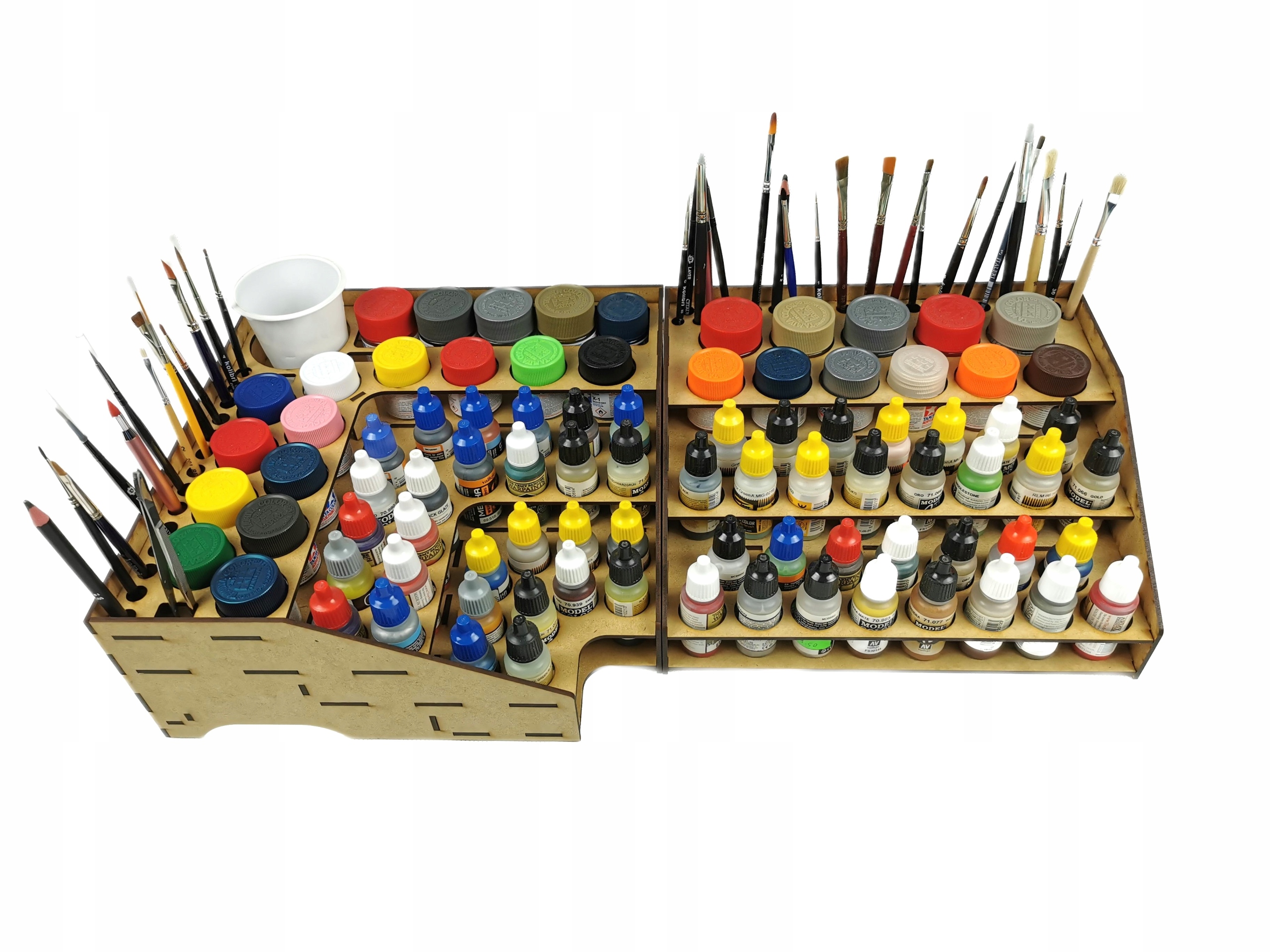 Одним из самых больших преимуществ нашего органайзера является возможность прикреплять дополнительные версии того же или аналогичного стенда, имеющиеся на другом аукционе. Благодаря этому вы сможете адаптировать свое рабочее место к своим индивидуальным потребностям и предпочтениям. В предложение входят угловая подставка и подставка для инструментов, а также подставка для краски соответствующих размеров.