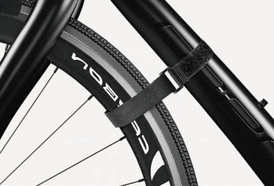 Входящий в комплект ремень предотвращает перемещение или раскачивание переднего колеса, защищая стены и другие объекты от повреждений и грязи.