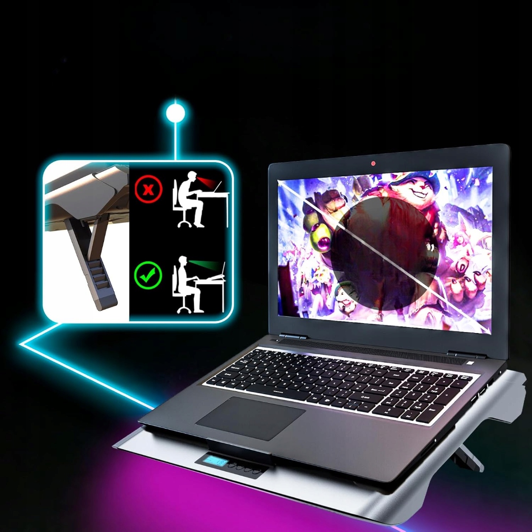 ОХЛАЖДАЮЩАЯ ПОДСТАВКА ДЛЯ НОУТБУКА РЕГУЛИРОВКА ИГРОВОЙ ПОДСТАВКИ KLIM LED RGB