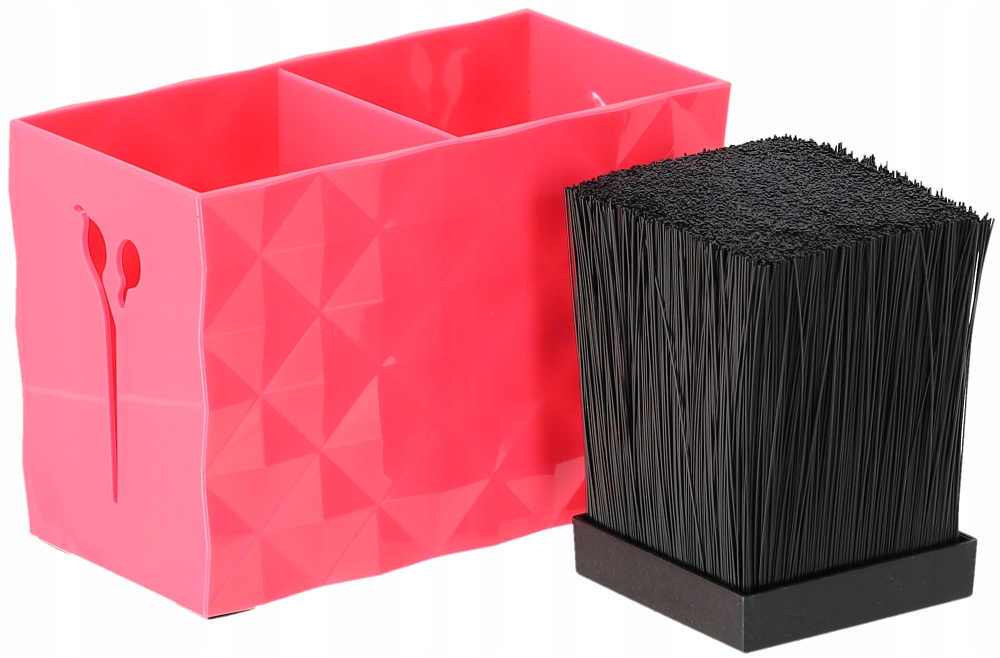 Преимущество этого изделия в том, что ножницы можно вставить в любое место горшка благодаря нейлоновым ворсам, которые не повреждают корпус ножниц.