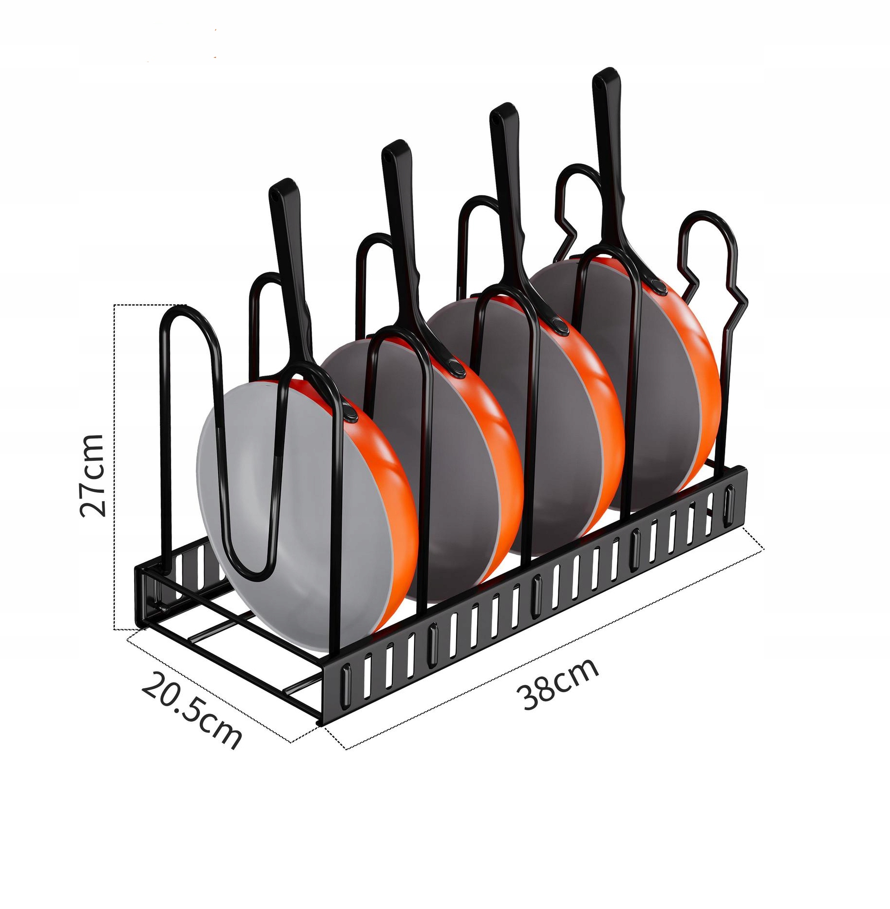 Практичный пятиуровневый органайзер для сковород из черной лакированной проволоки.