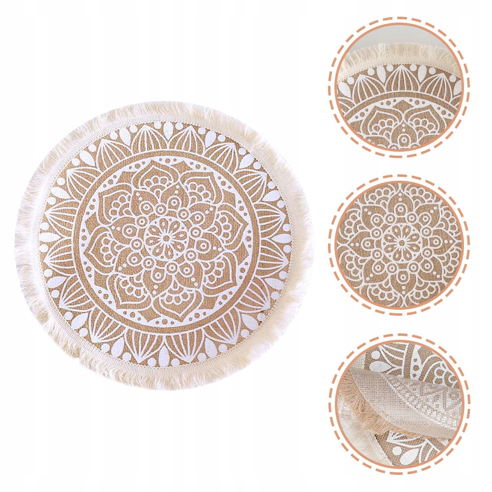 ✅Коврик для столовых приборов изготовлен из джута, в богемном стиле с цветочным узором и кисточкой. узор.