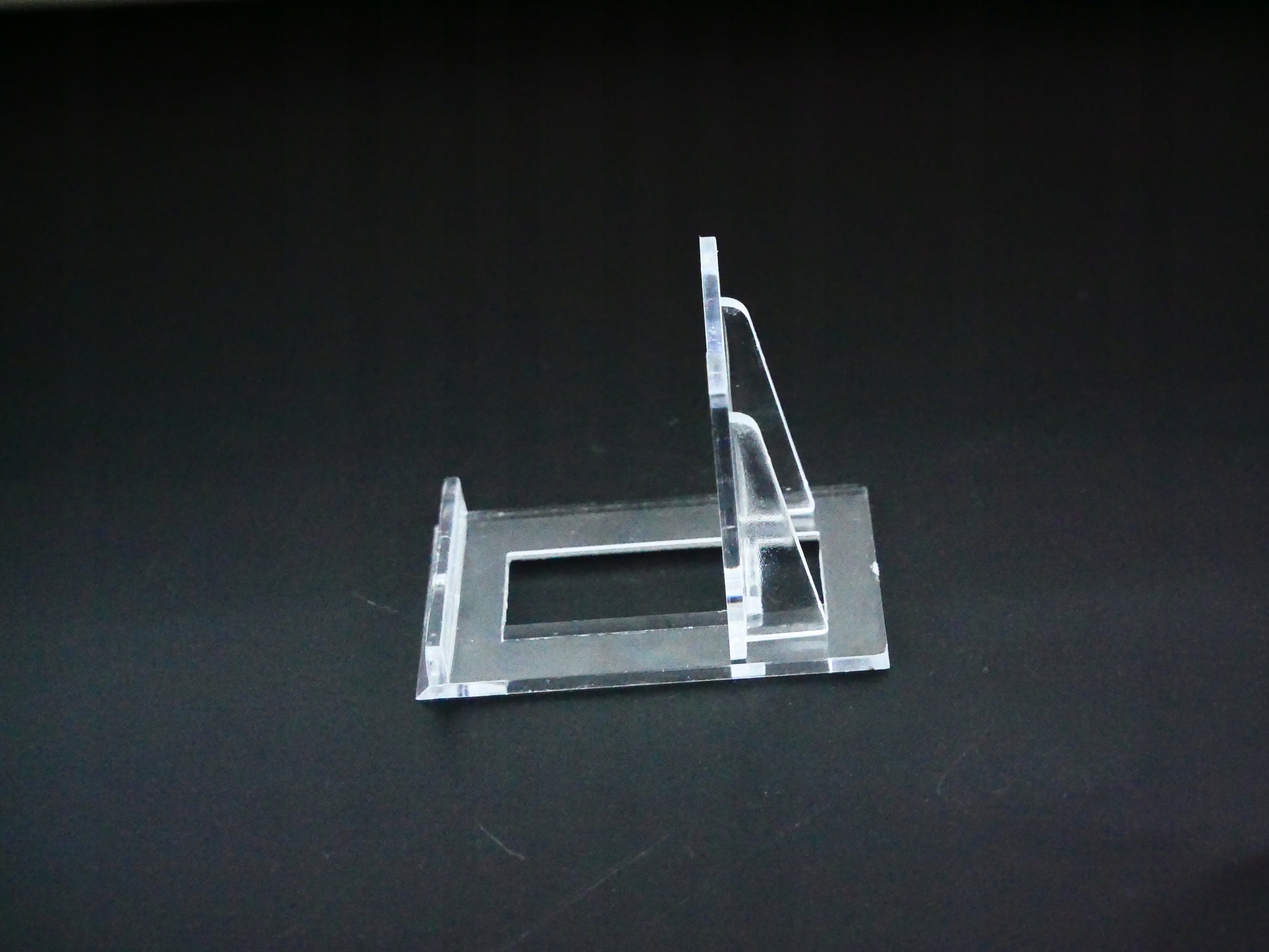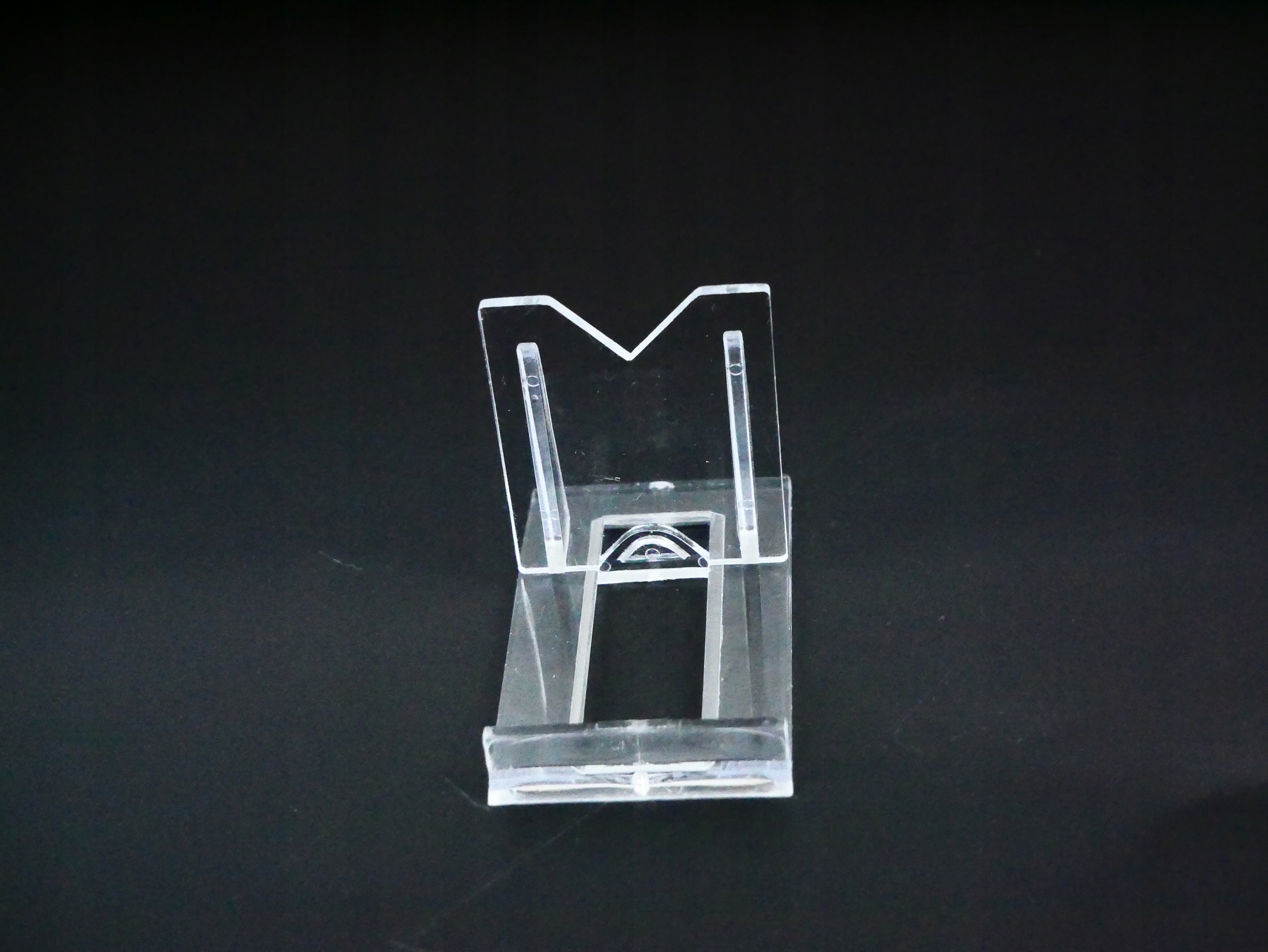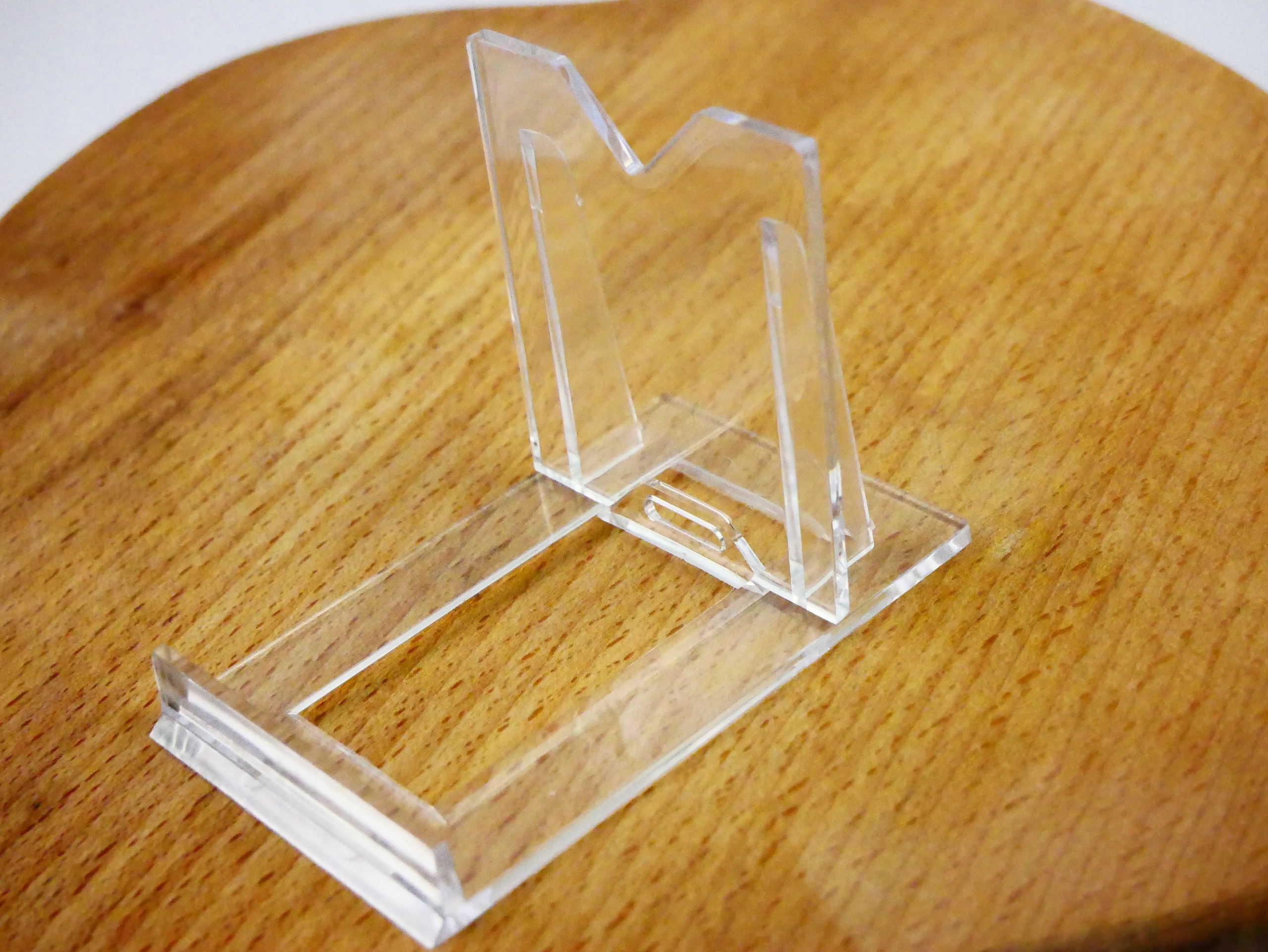 Очень аккуратная и полезная подставка, изготовлена из жесткого и прочного материала - оргстекла. Стенд состоит из двух частей: основания и опоры. Опору можно легко соединить с основанием и перемещать вперед или назад. Благодаря этому вы сможете подогнать его под размеры вещи, которая будет на его основе.