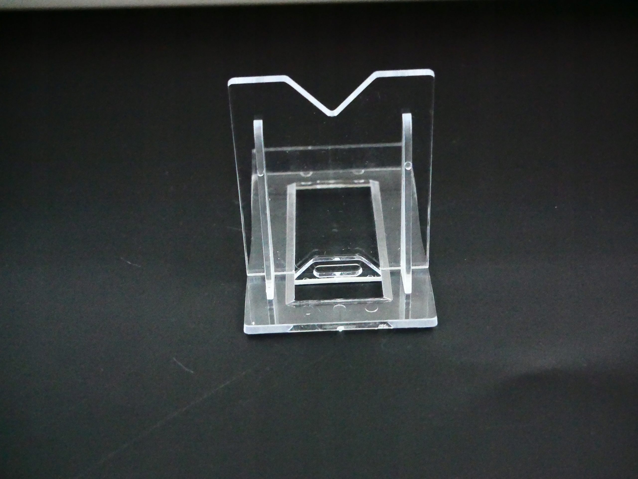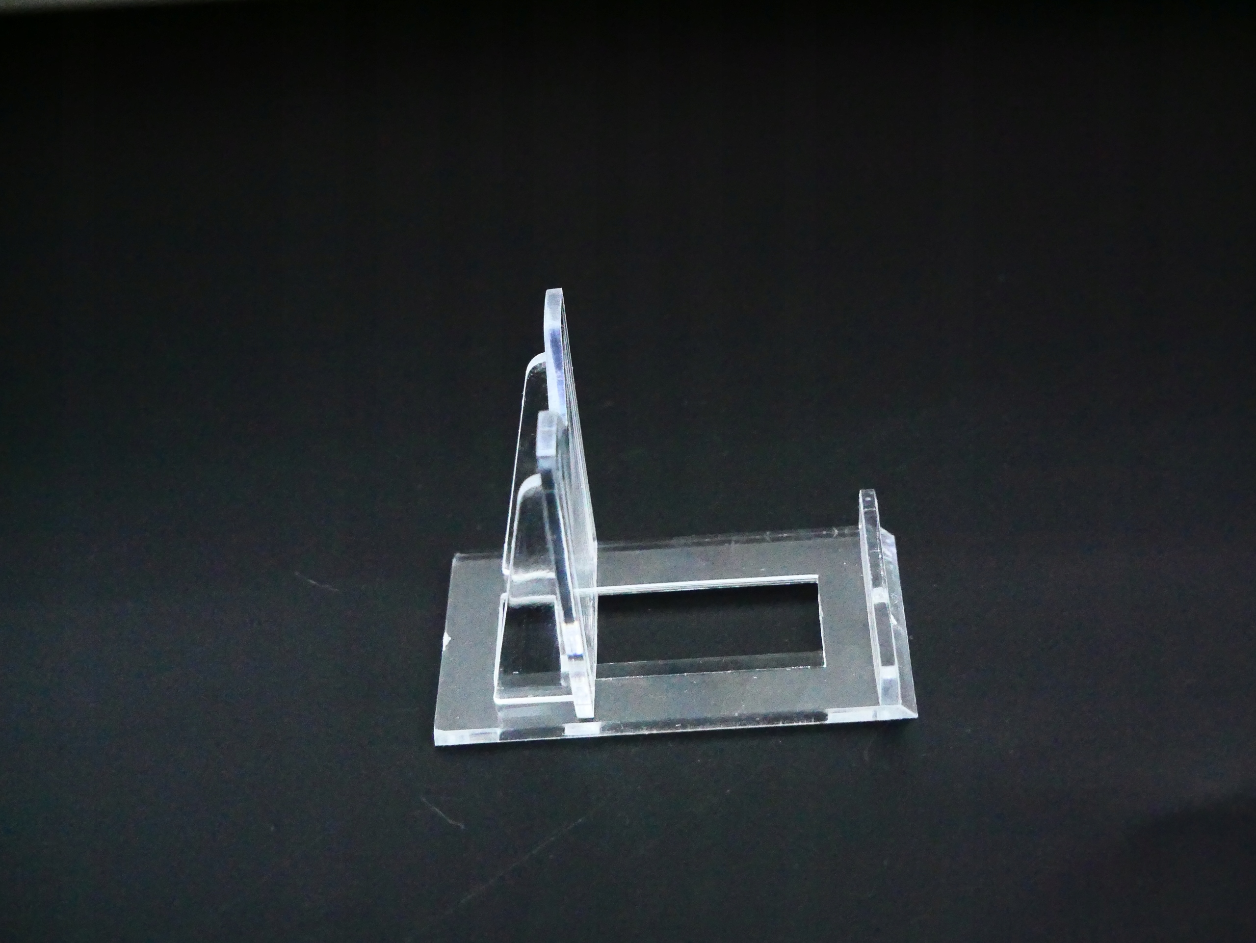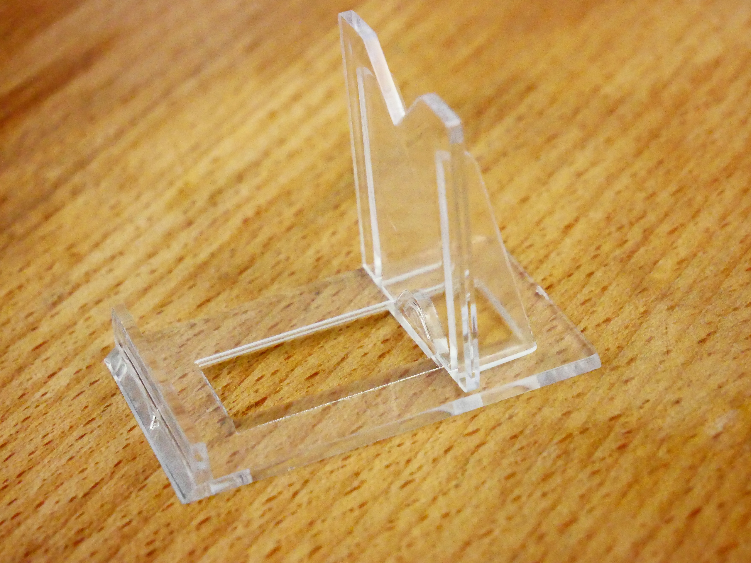 Очень аккуратная и полезная подставка, изготовлена из жесткого и прочного материала - оргстекла. Стенд состоит из двух частей: основания и опоры. Опору можно легко соединить с основанием и перемещать вперед или назад. Благодаря этому вы сможете подогнать его под размеры вещи, которая будет на его основе.