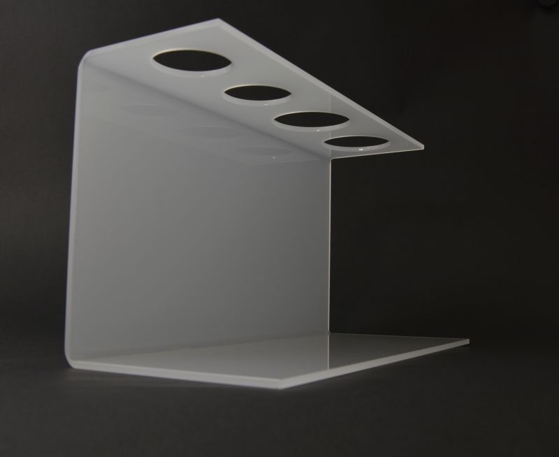Лазерная резка оргстекла придает подставке очень элегантный вид.