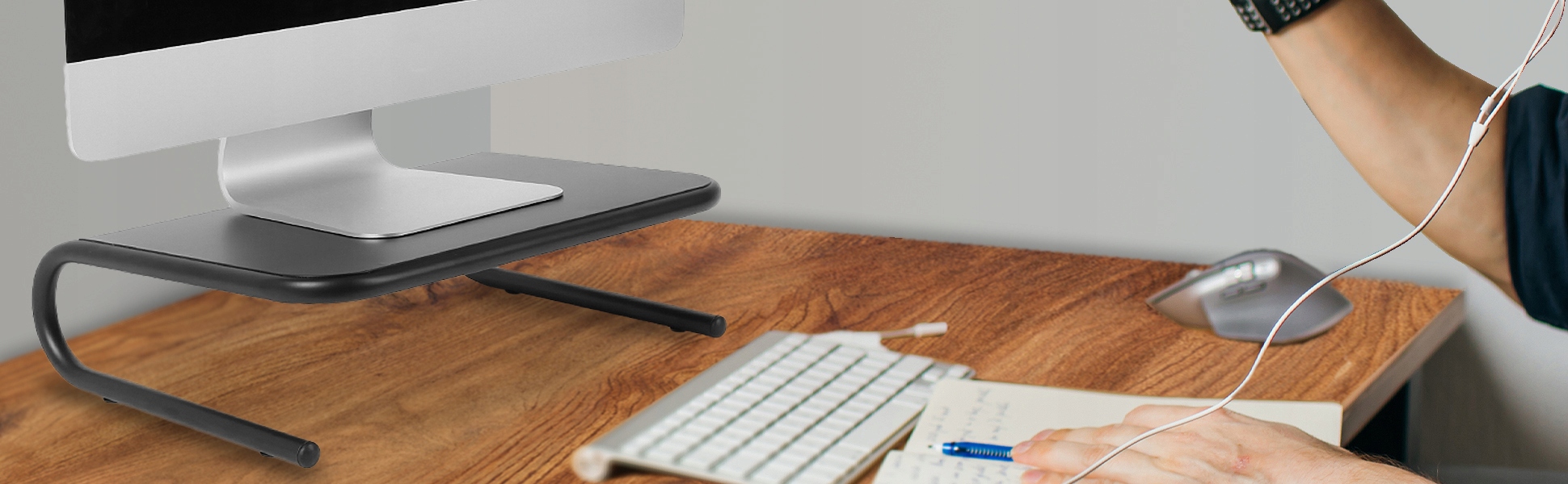 Подняв монитор на подставку, вы получаете дополнительное пространство, которое позволит спрятать офисные принадлежности, небольшие гаджеты, клавиатуру и мышь или даже такие устройства, как Xbox, PlayStation, DVD-плеер. Все ваше оборудование будет под рукой и в то же время организовано.