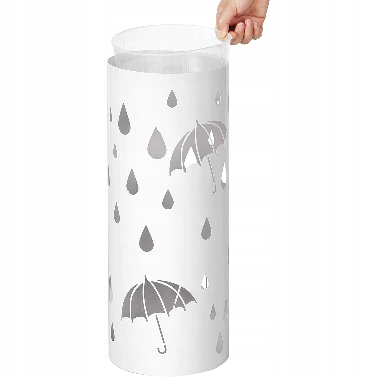 Держатель для зонта оснащен съемным пластиковым поддоном для воды, который защитит пол от влаги. Вам больше не придется сушить развернутый зонт на плитке, просто поместите мокрый зонт внутрь подставки, и вся вода стечет прямо в слив.