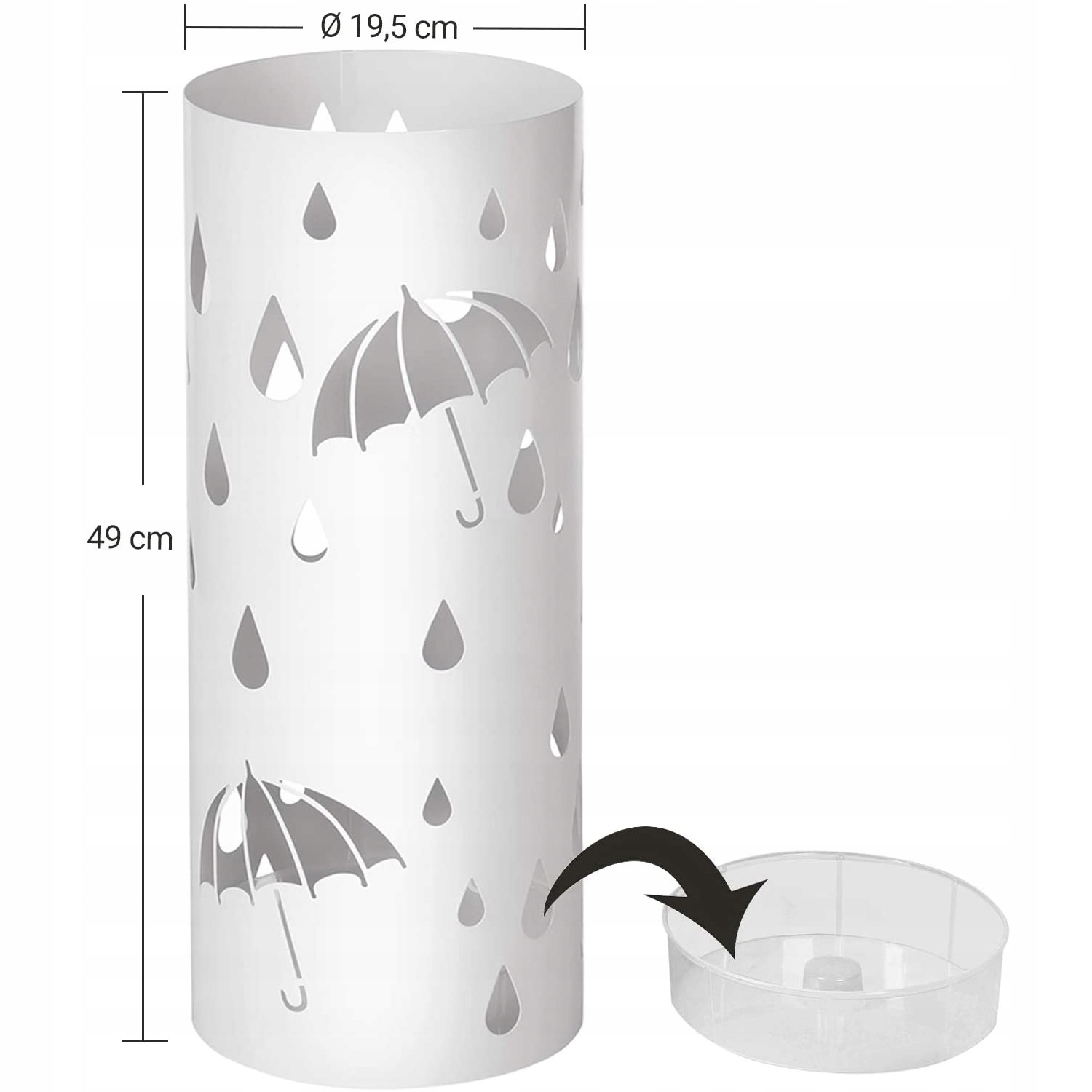 Держатель для зонта оснащен съемным пластиковым поддоном для воды, который защитит пол от влаги. Вам больше не придется сушить развернутый зонт на плитке, просто поместите мокрый зонт внутрь подставки, и вся вода стечет прямо в слив.