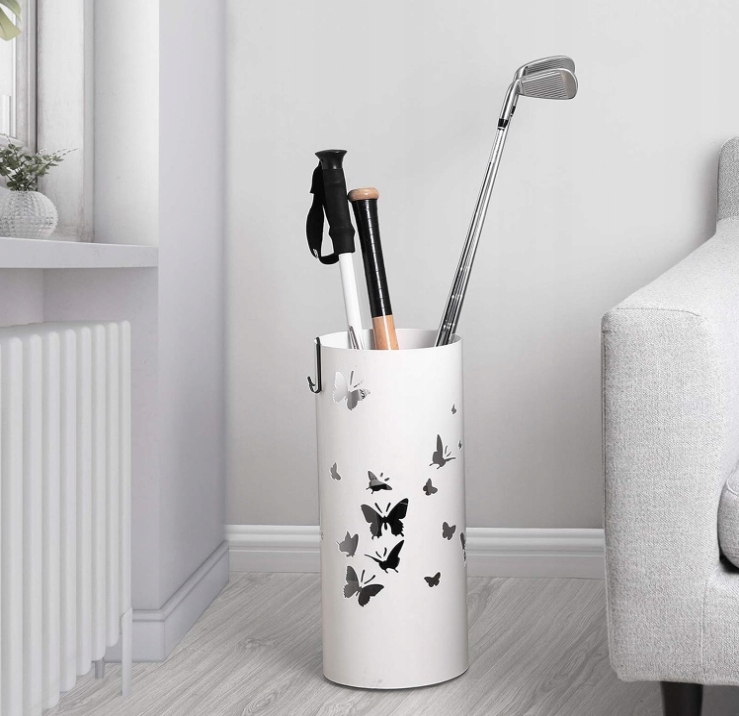 - Элегантный дизайн - круглая форма и белая окраска с воздухопроницаемыми отверстиями на реалистичных бабочках превращают подставку для зонтов в декоративный элемент, придающий изюминку вашему интерьеру.