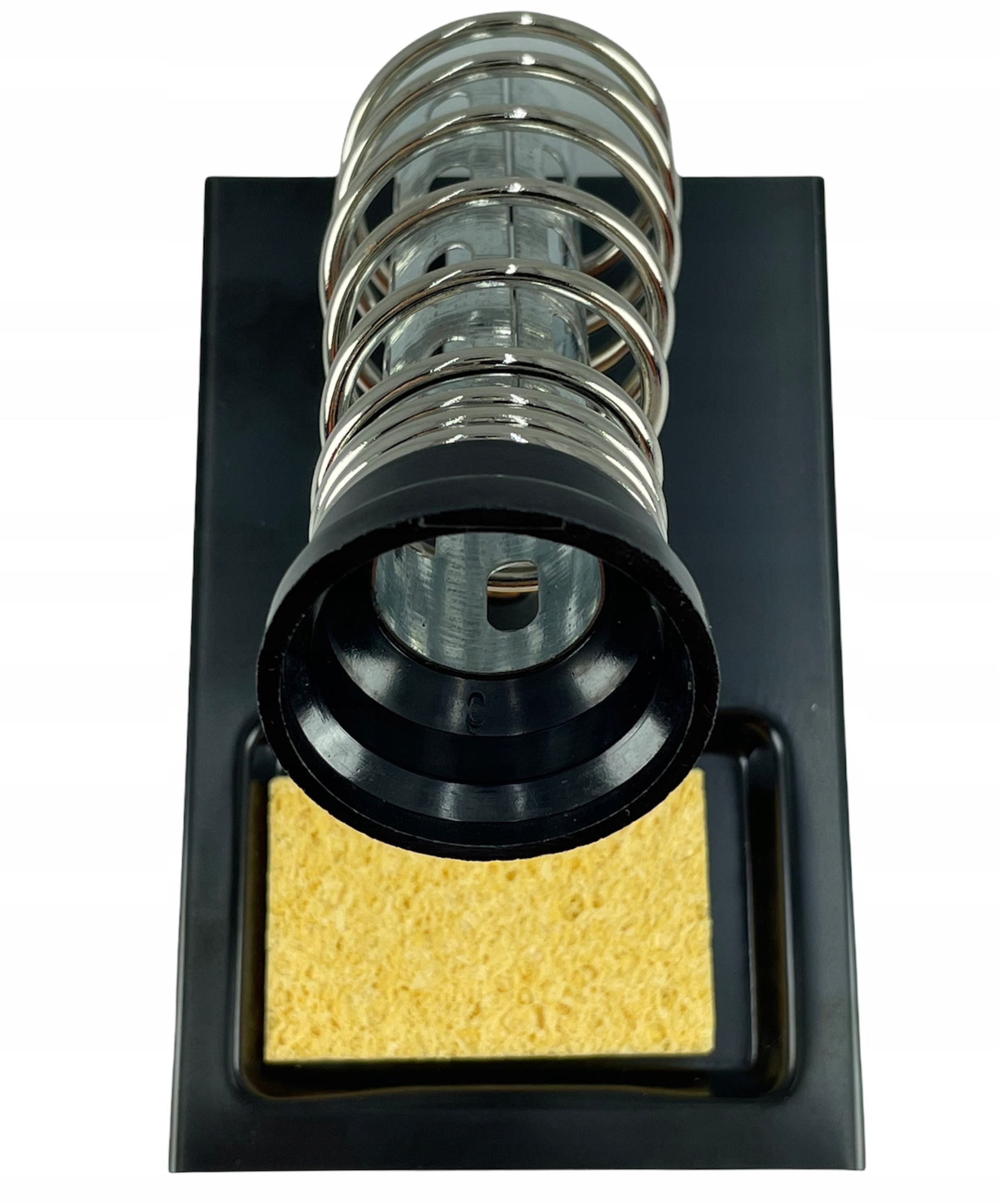 Качественная металлическая подставка для паяльника с быстрой и простой сборкой. Подставка сделана таким образом, чтобы обеспечить устойчивость устройств. В комплект также входит губка для чистки насадок.