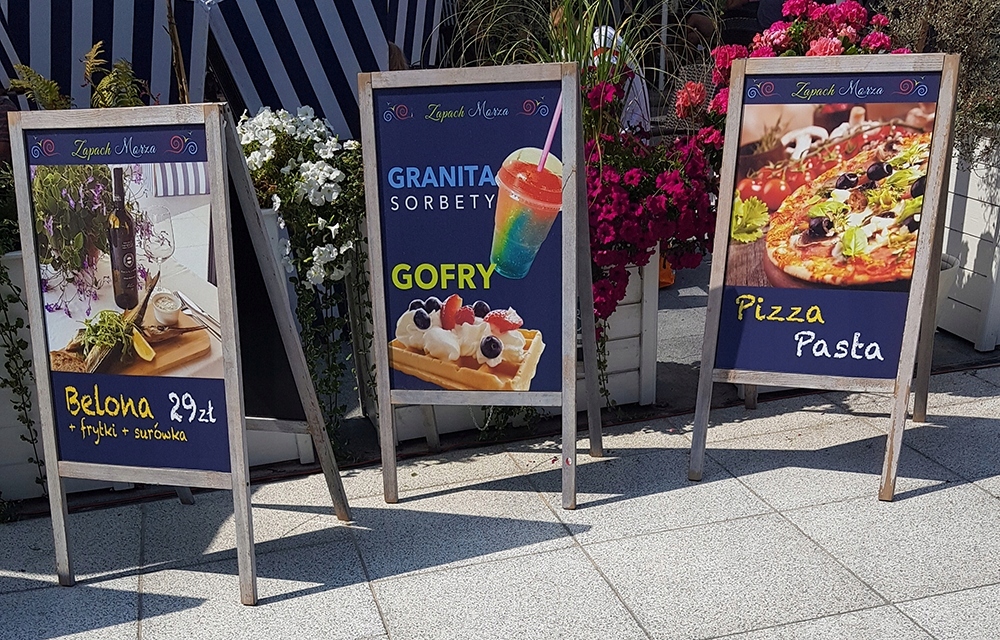 Вывеска изготовлена из черной плиты HDF, поэтому на ней можно легко написать то, что вы сейчас хотите предложить прохожим.