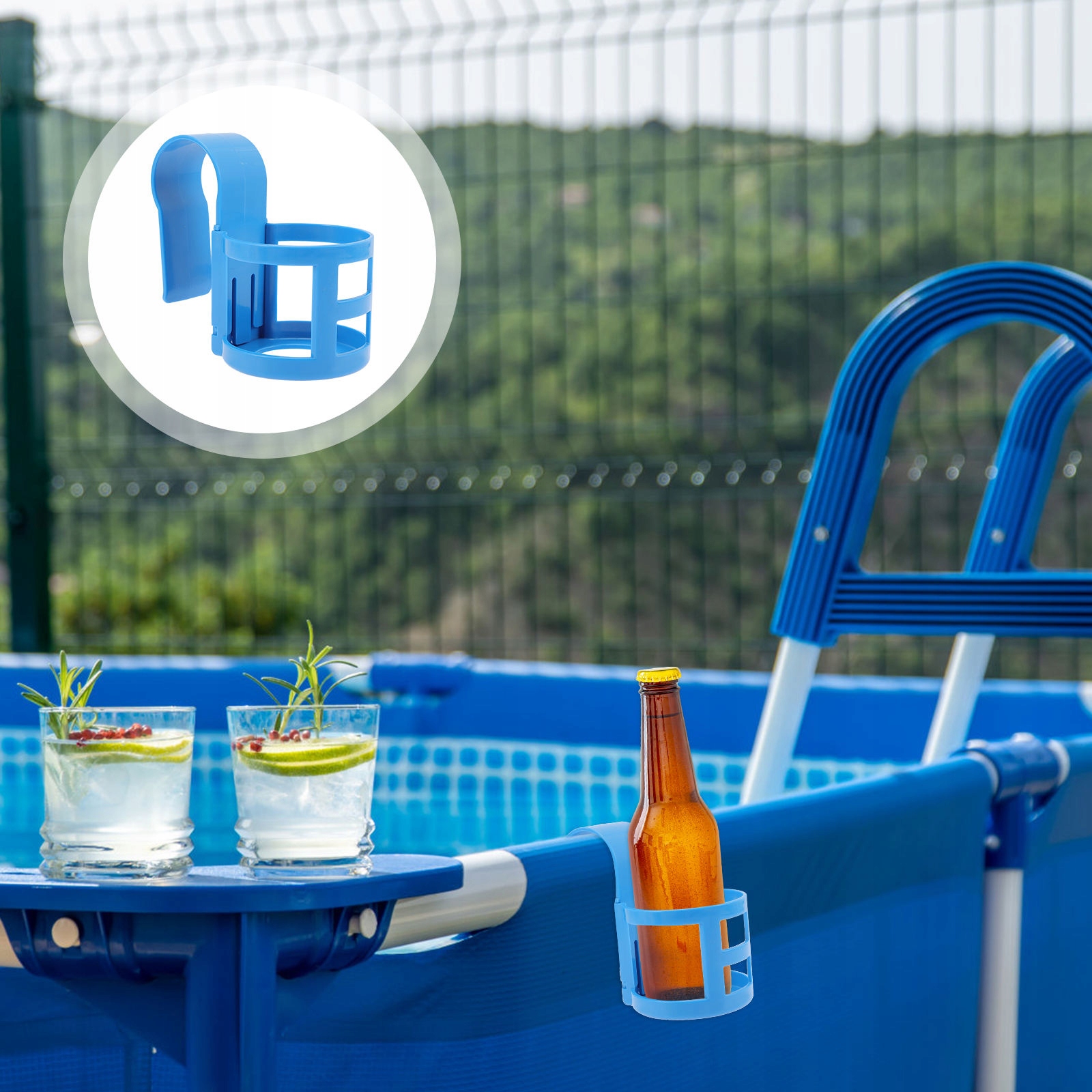 ✅Просты в использовании, просто прикрепите эти подстаканники к круглой верхней перекладине вашего наземного бассейна.