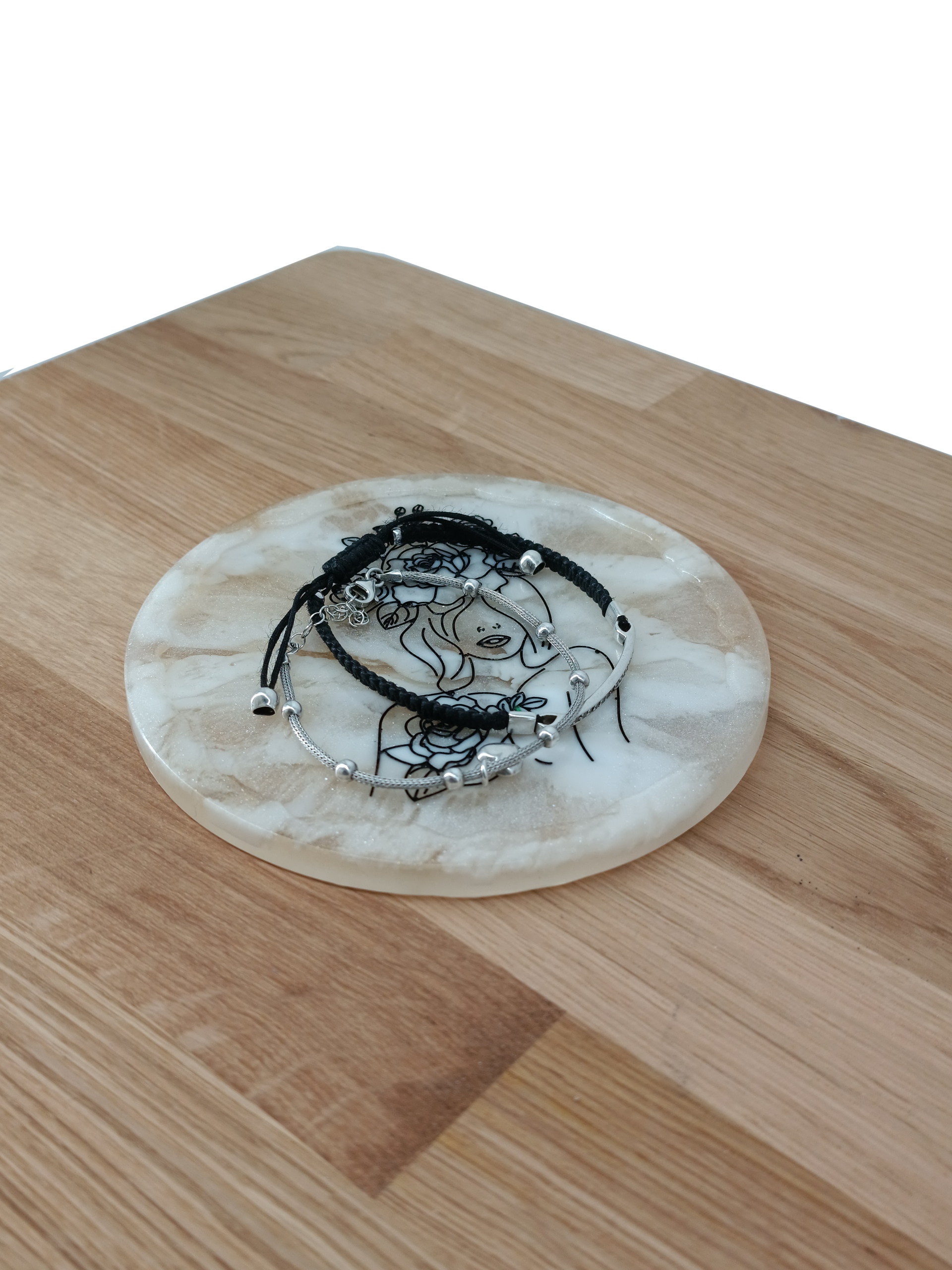 РУЧНАЯ РАБОТА! Подставка изготовлена на 100% вручную из натуральной смолы с частицами жемчуга. Женский мотив, выгравированный черной краской.